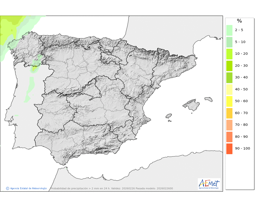 Sin cambios o con ligero ascenso de las mínimas. Alguna helada débil en fondos de valle.