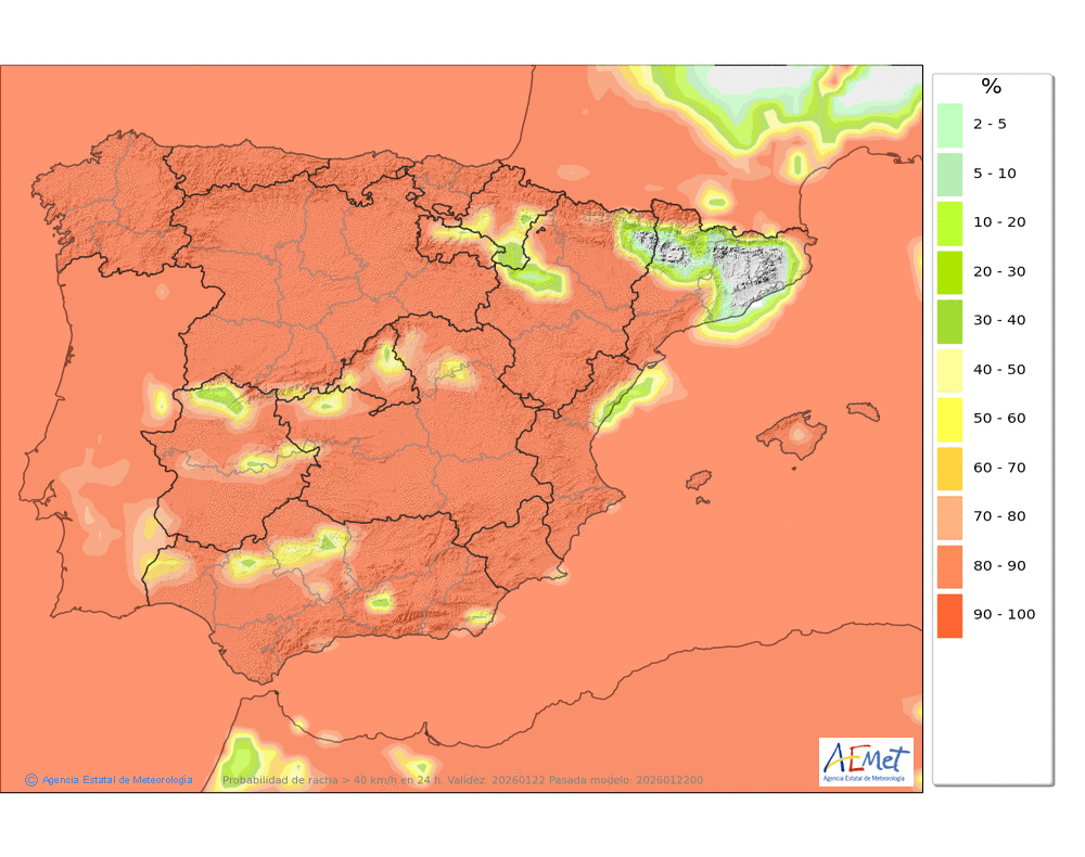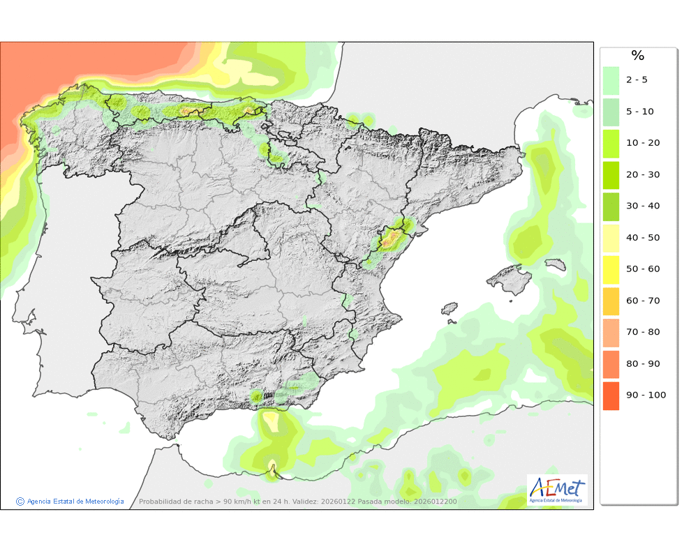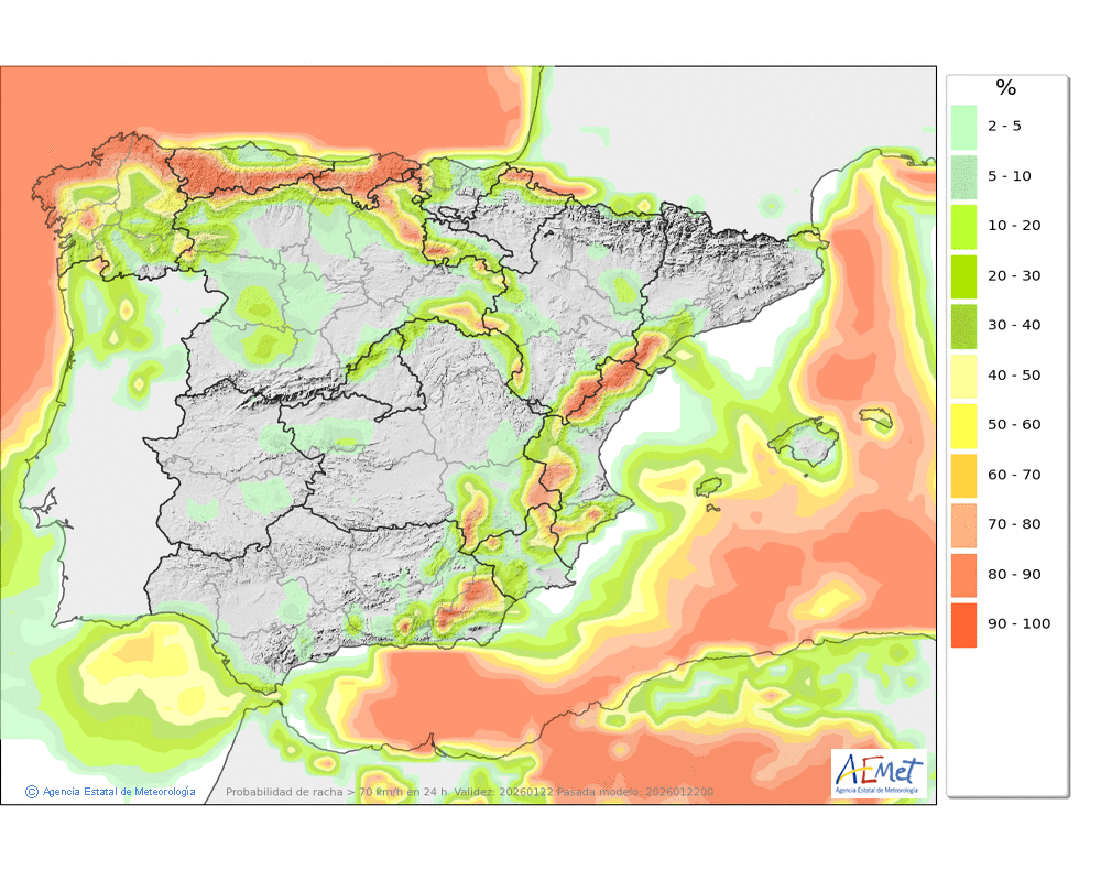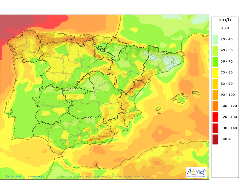 Fuerte del oeste girando a suroeste, con probables rachas muy fuertes en cotas altas y zonas expuestas al final del día.