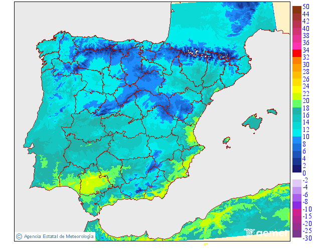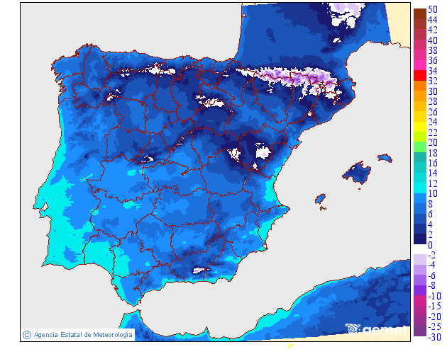 En descenso, notable de las máximas. Heladas débiles, moderadas en cotas altas.