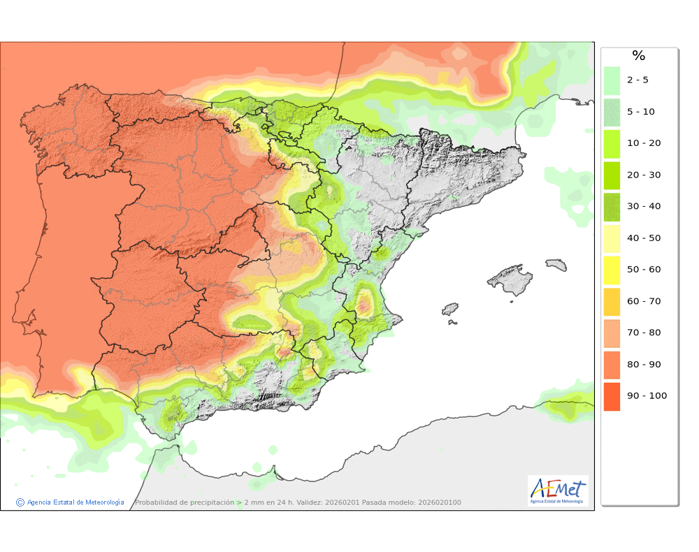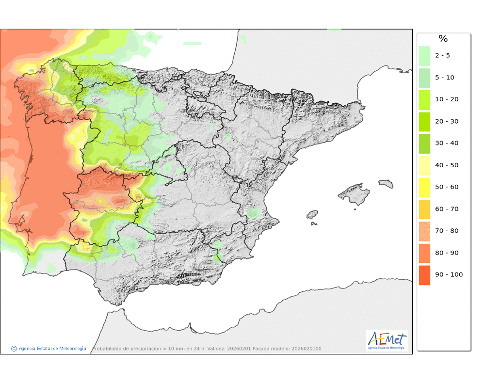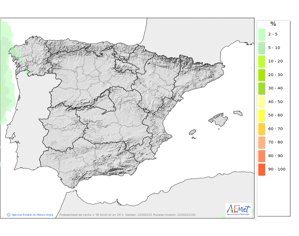 fuertes del suroeste, que podrán superar los 100 km/h.
