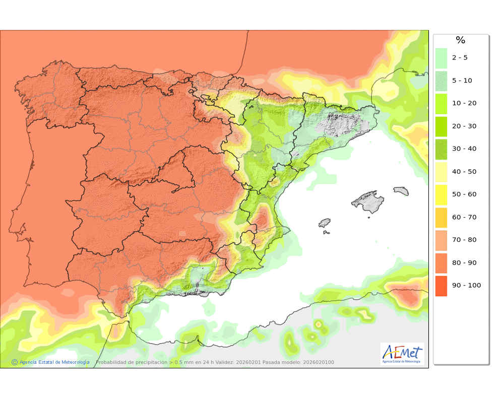 Viento en la atmósfera libre a 3000 m: SW 90 km/h