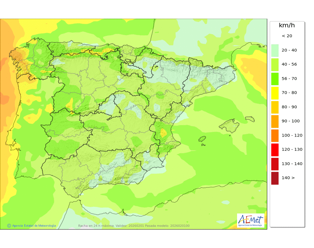 En cotas altas y zonas expuestas, se esperan rachas muy