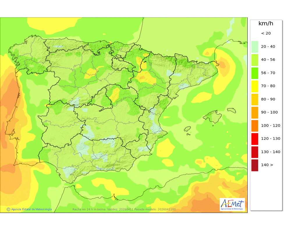 Soplarán vientos flojos o moderados de componente sur, girando a norte durante la mañana y ganando intensidad por la tarde, cuando podrá haber intervalos de intensidad fuerte.