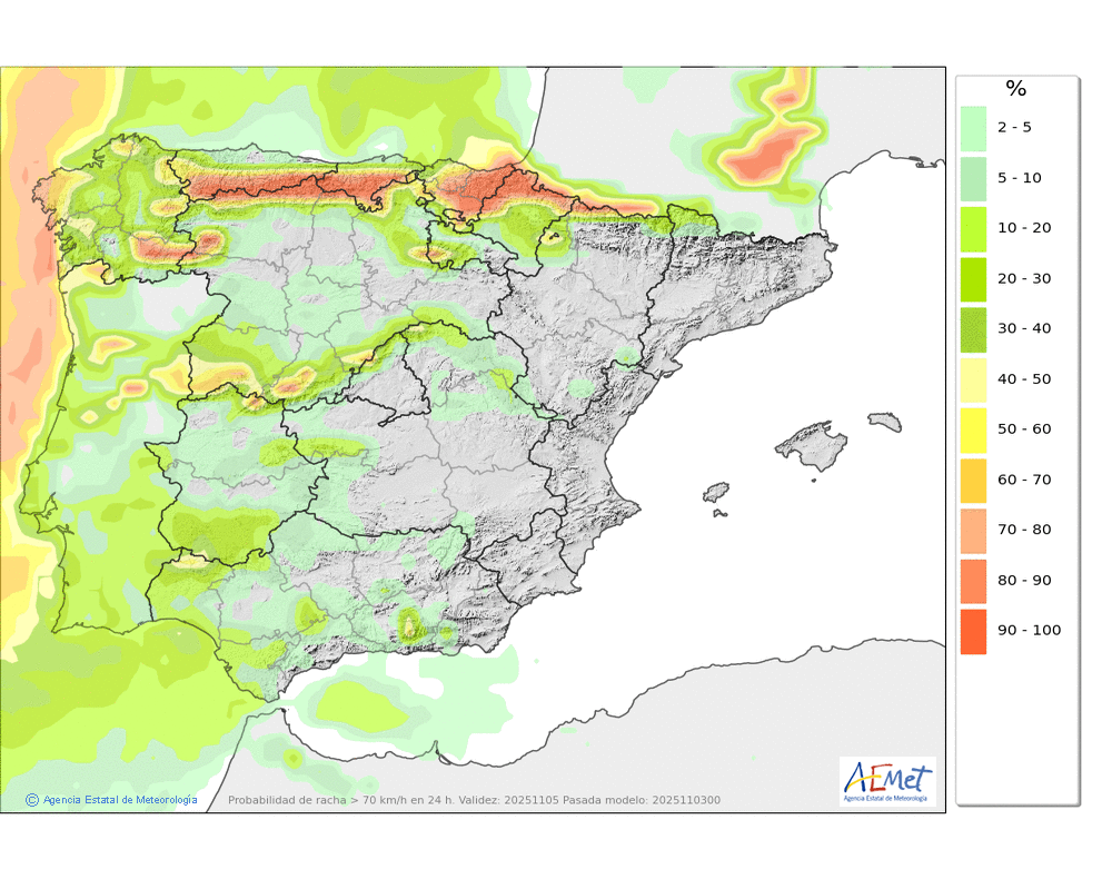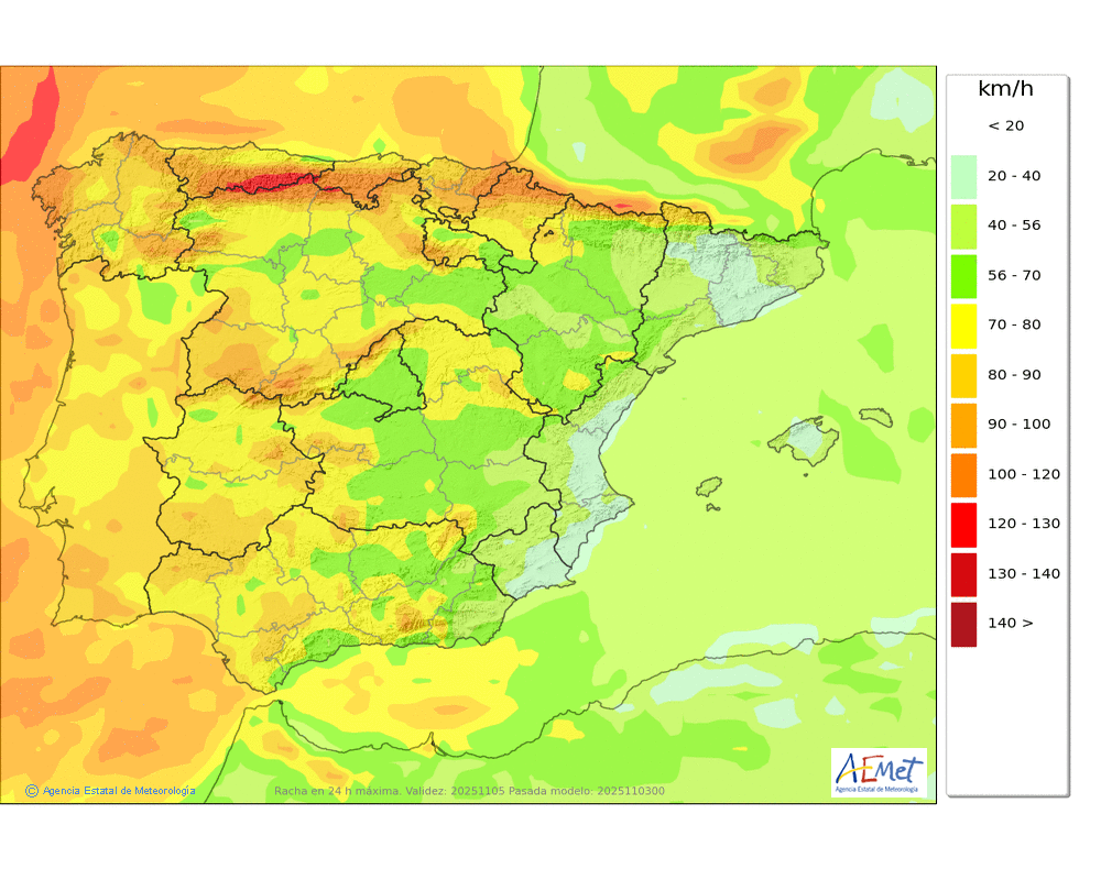 Soplarán vientos moderados del sur y sudoeste, aumentando a fuertes por la tarde, con rachas muy fuertes en cotas altas y zonas expuestas.