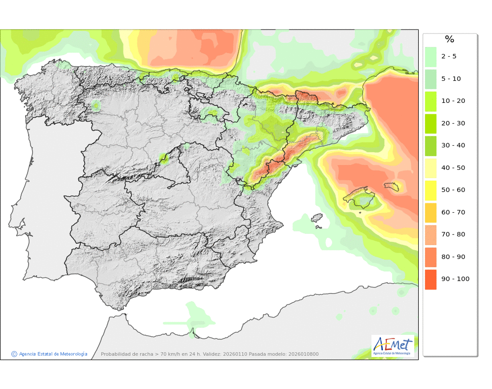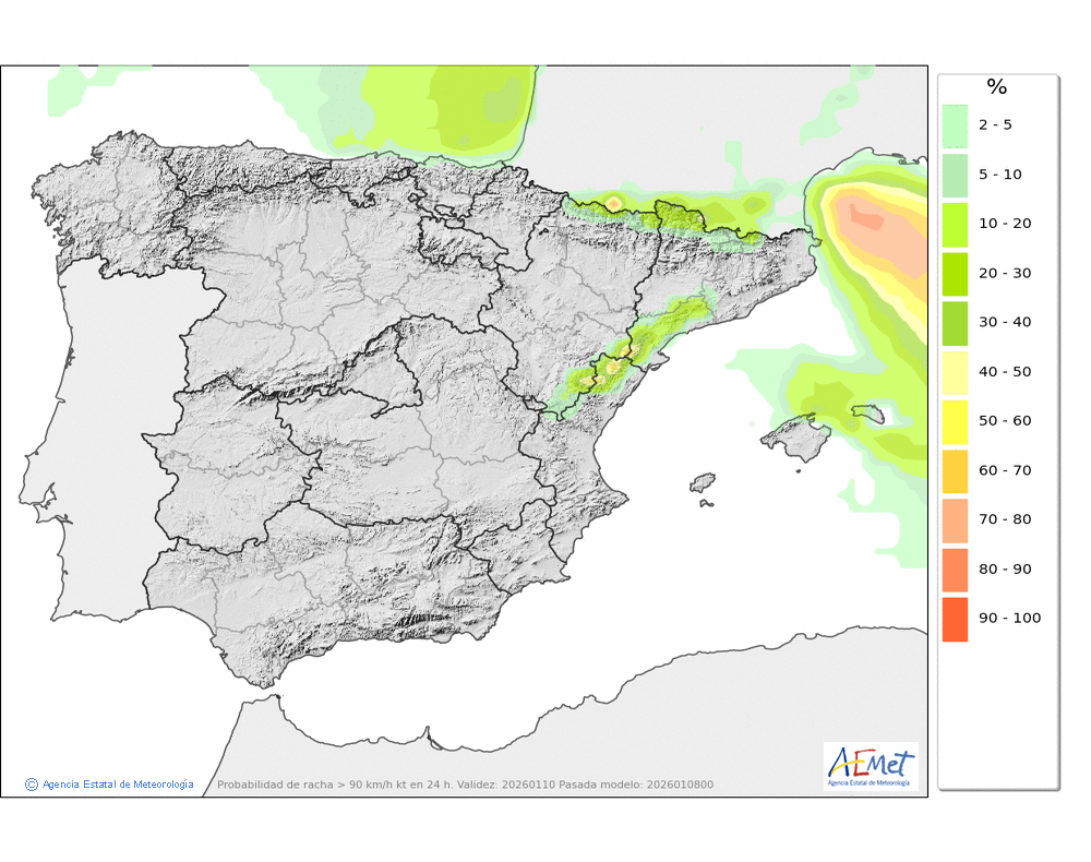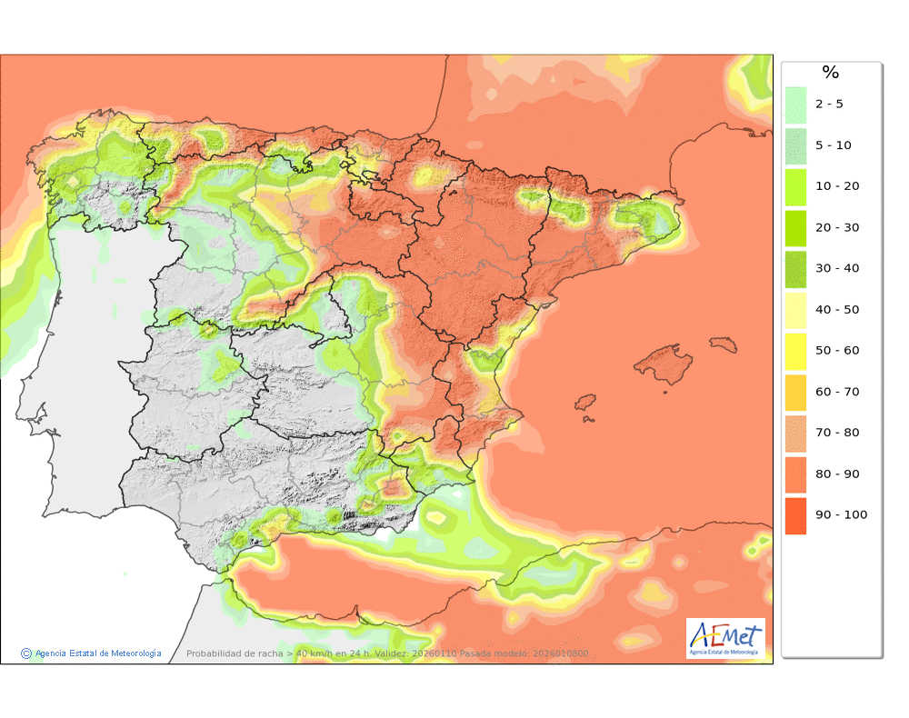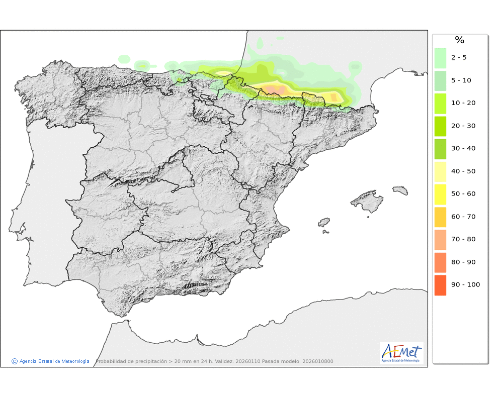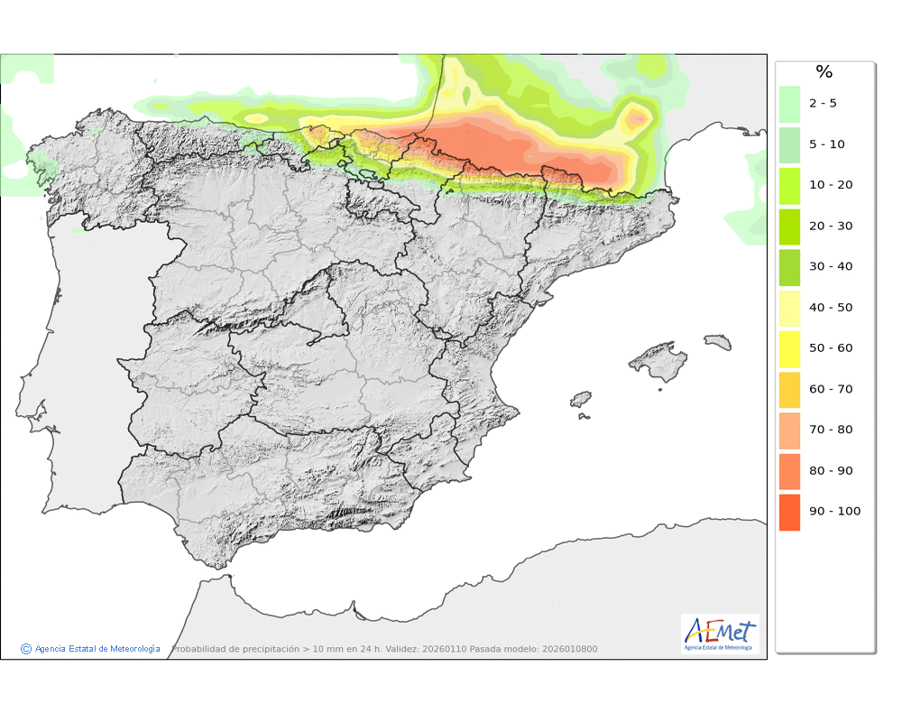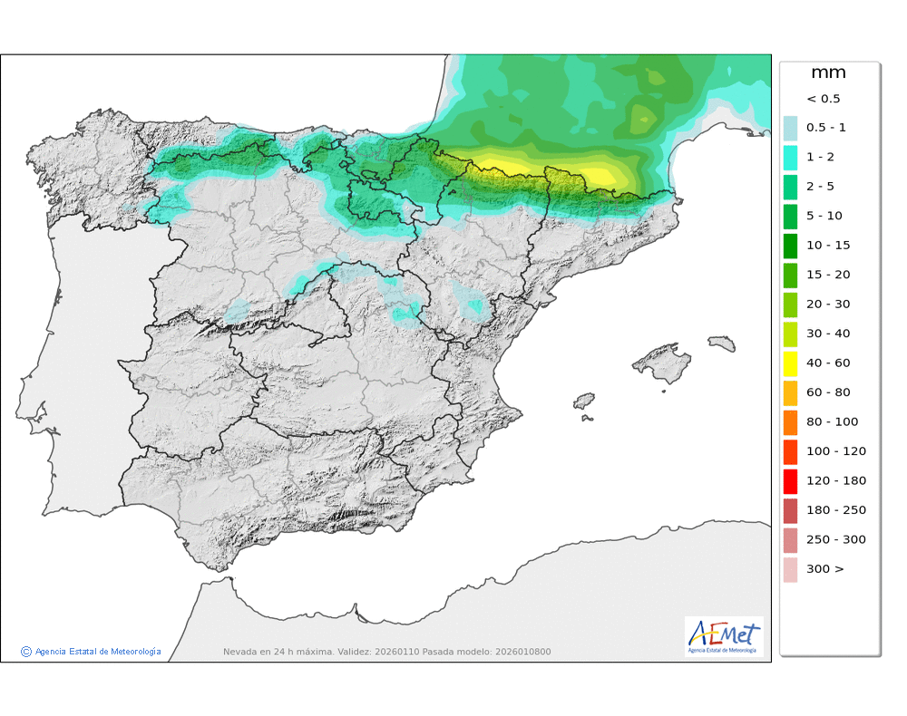 No se descartan algunas débiles a últimas horas en las sierras occidentales, que podrían ser de nieve por encima de unos 1800-2000 metros.