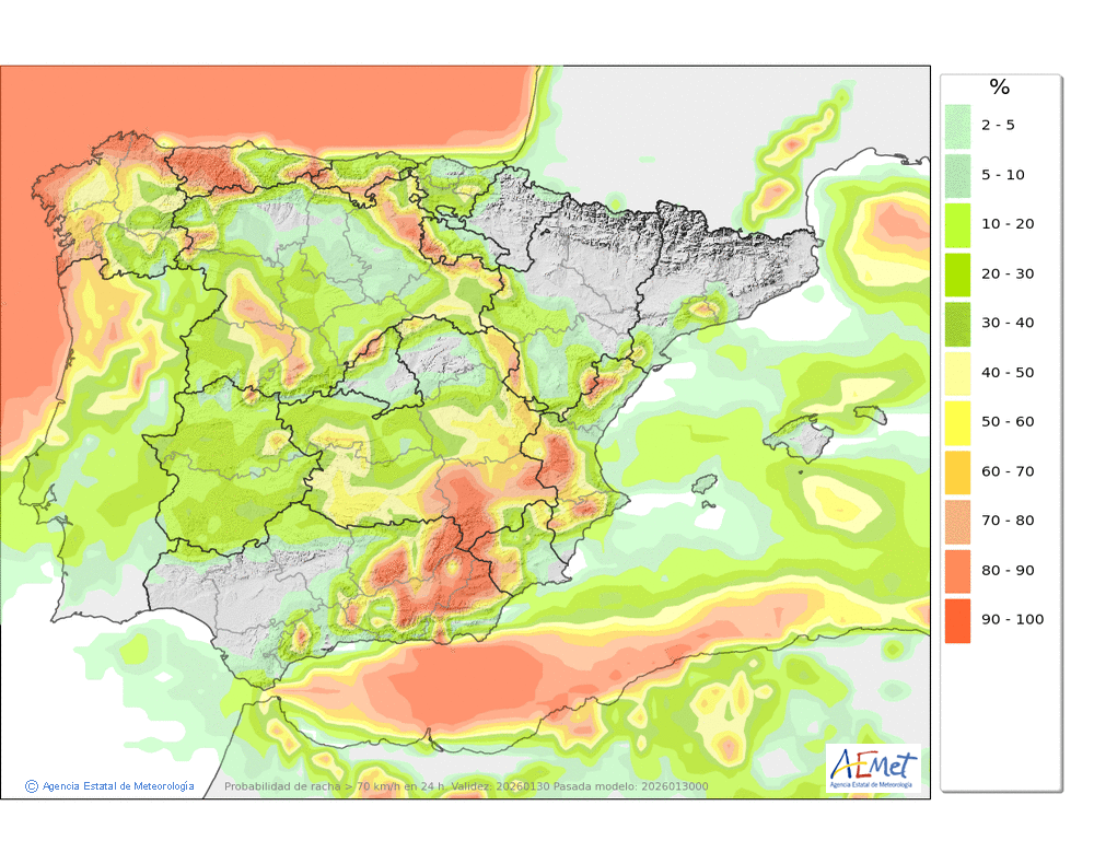 Soplarán vientos fuertes del oeste y sudoeste, con rachas muy fuertes en cotas altas y zonas expuestas.