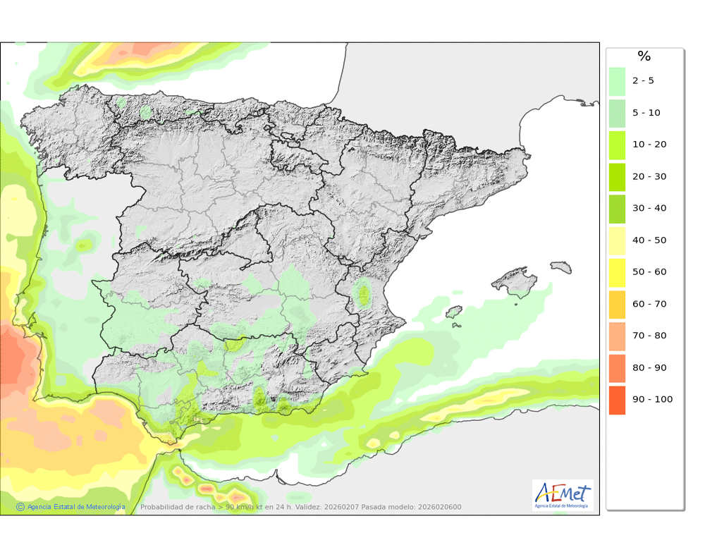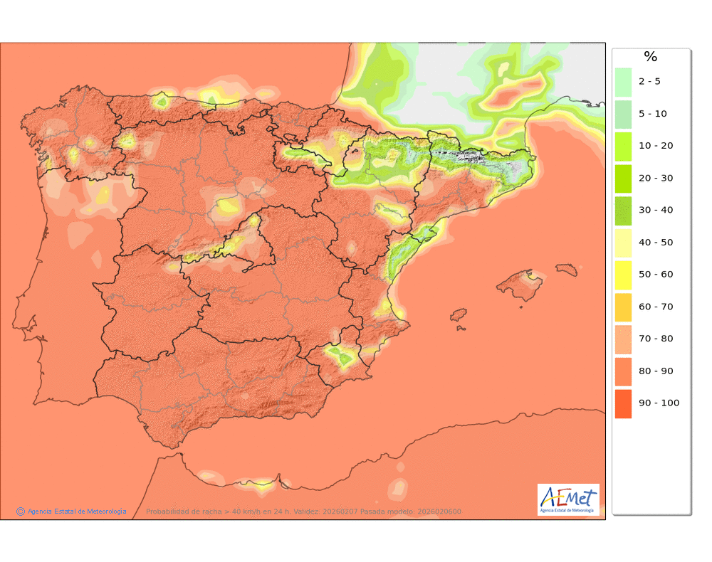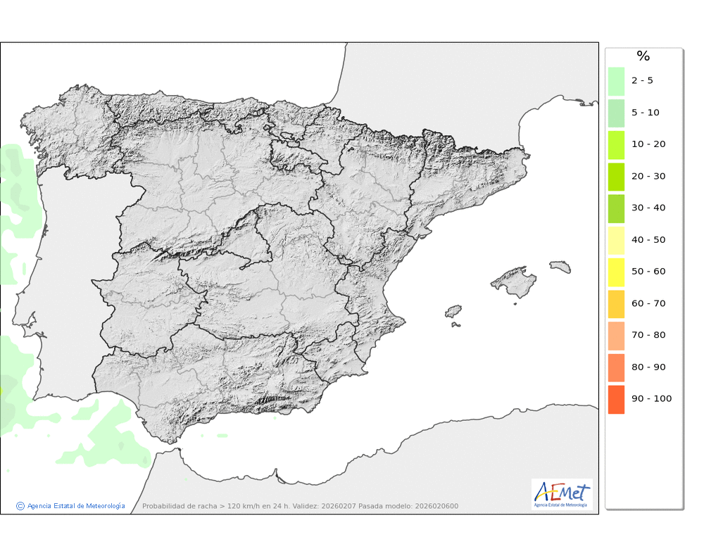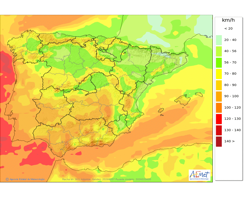 Soplarán vientos moderados de componentes oeste y sur, fuertes con rachas muy fuertes en cotas altas y zonas expuestas, tendiendo a aflojar por la tarde.