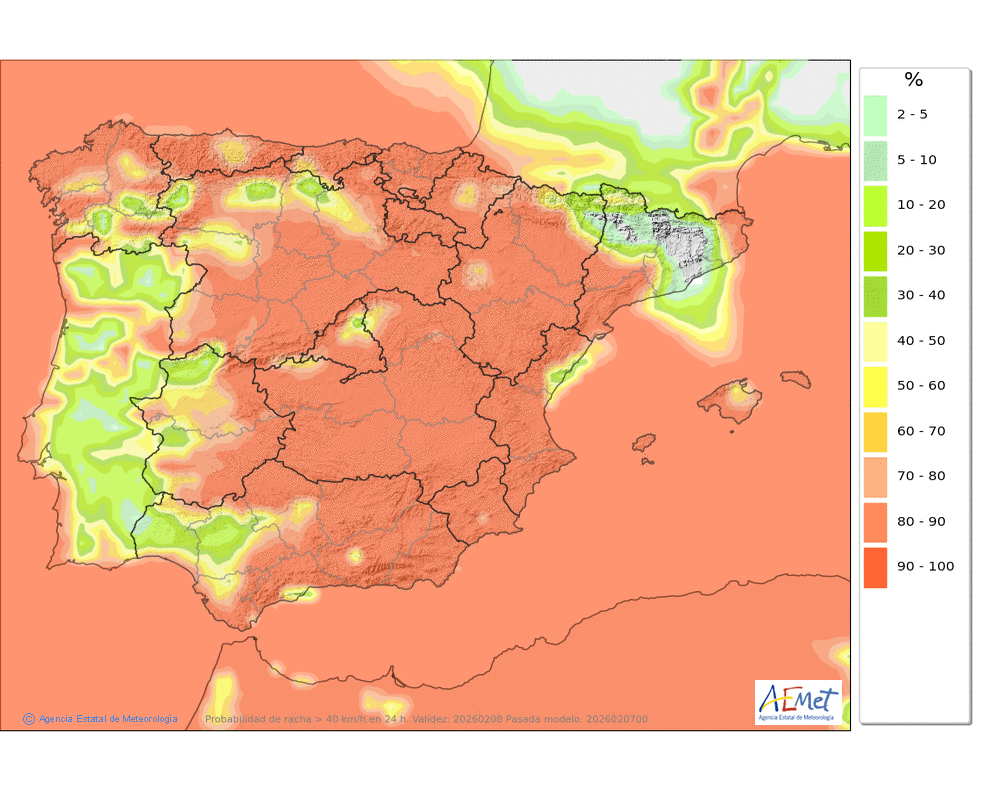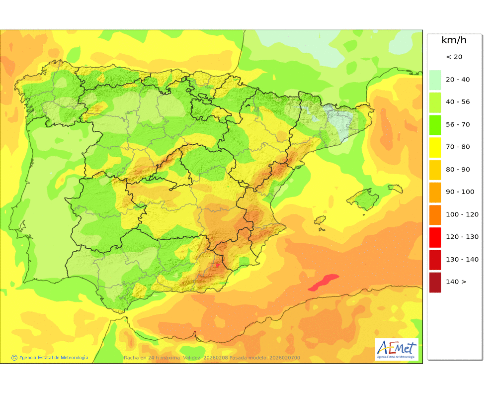 De componente oeste, moderado con intervalos fuertes, sobre todo en cotas altas y zonas expuestas.