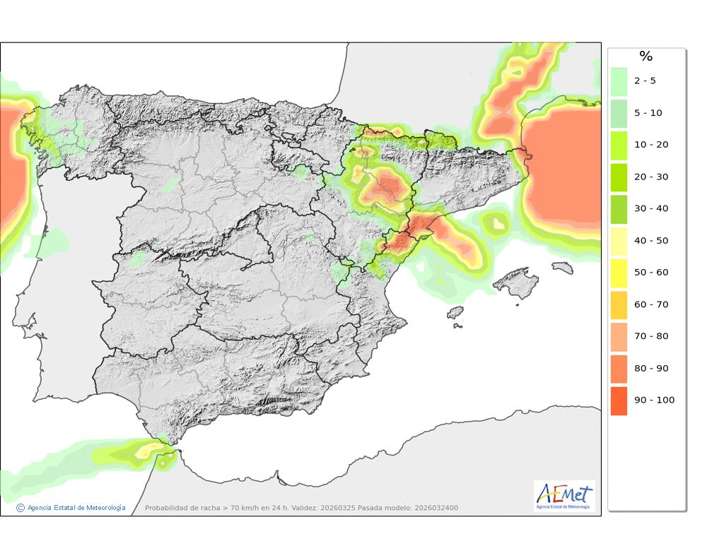 Soplarán vientos flojos de componente oeste, tendiendo a moderados del norte y noroeste durante la mañana y aumentando a fuertes por la tarde, con rachas muy fuertes en cotas altas y zonas expuestas.