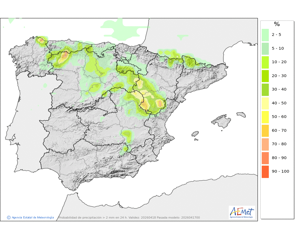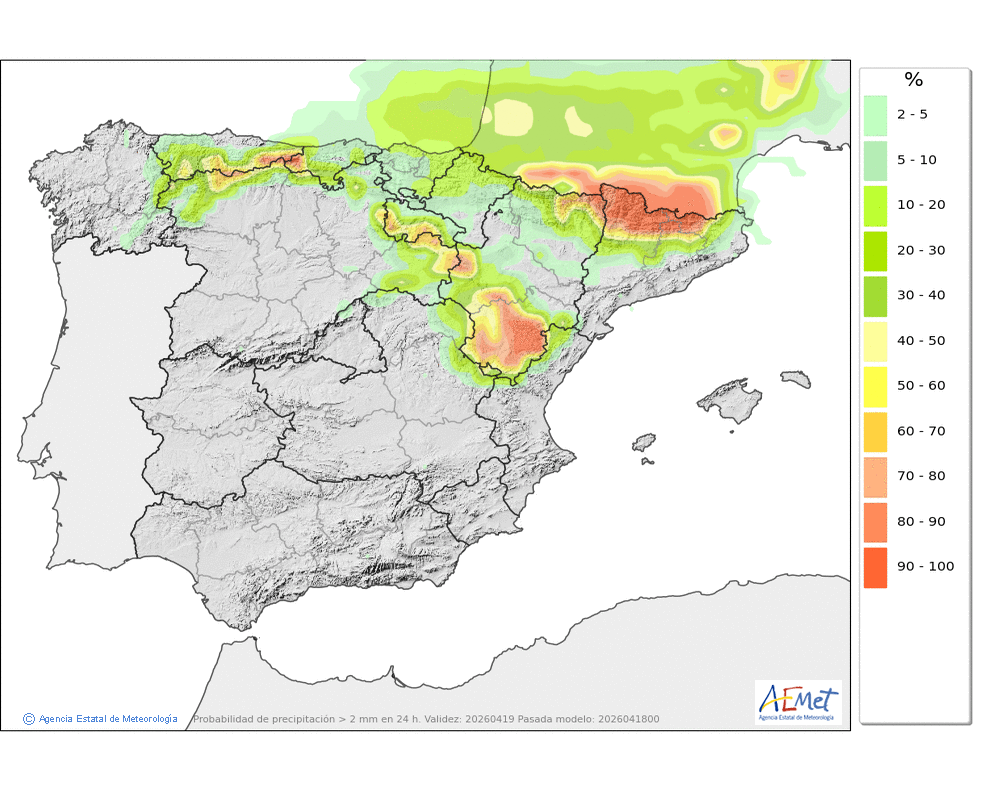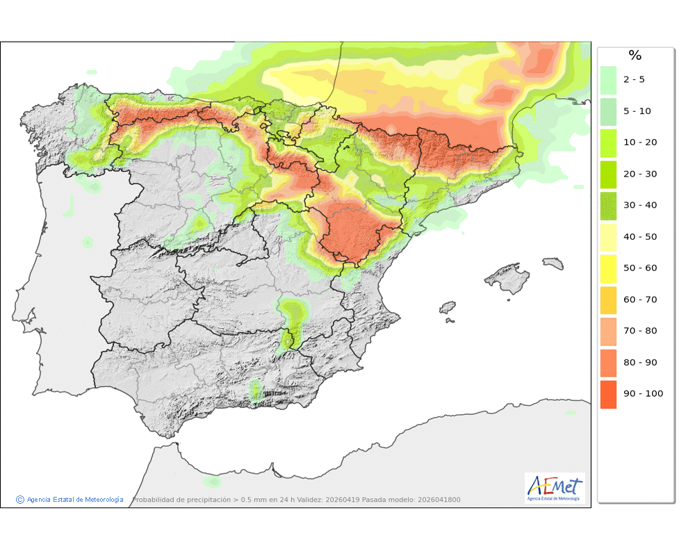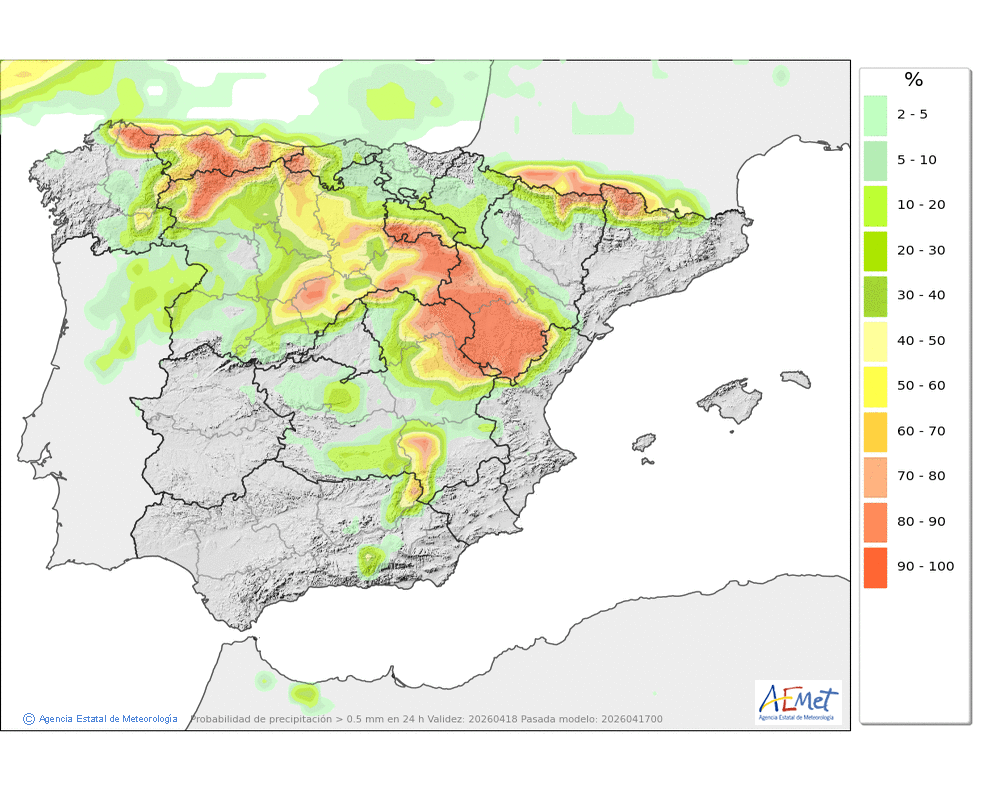 Se esperan chubascos durante la segunda mitad del día, que podrían ser localmente fuertes y con granizo.