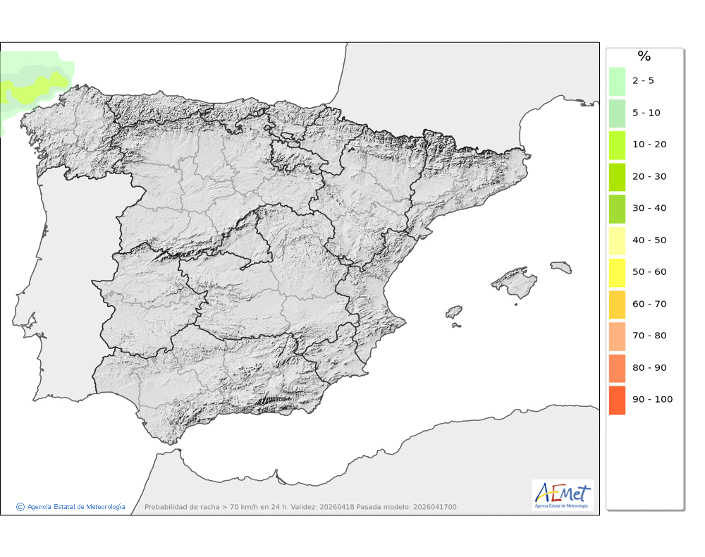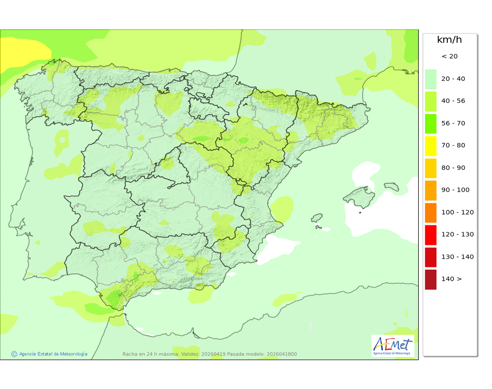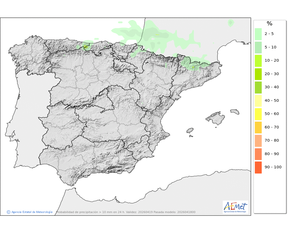 Mínimas sin cambios o en ligero descenso, y máximas Máximas en ligero ascenso.