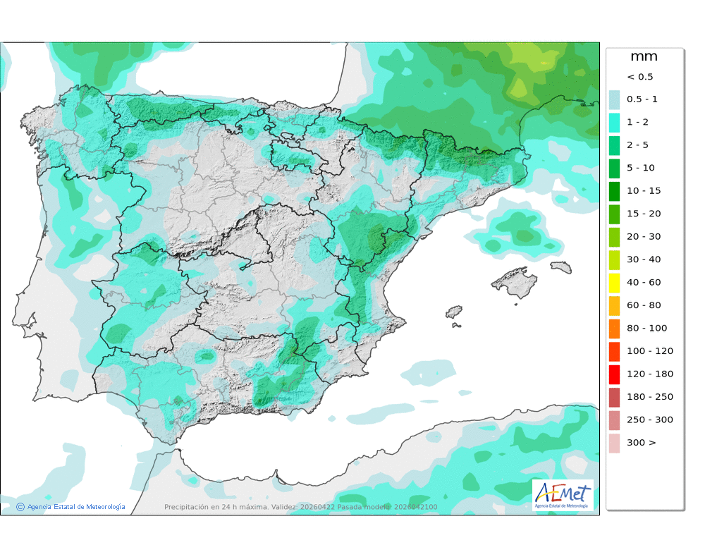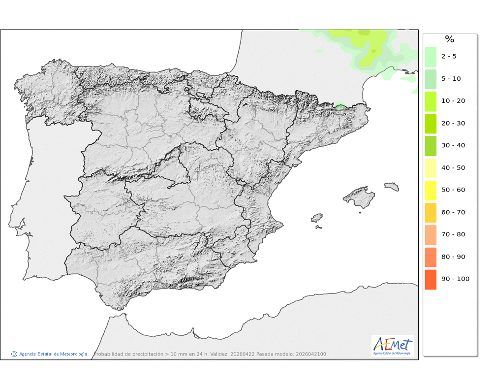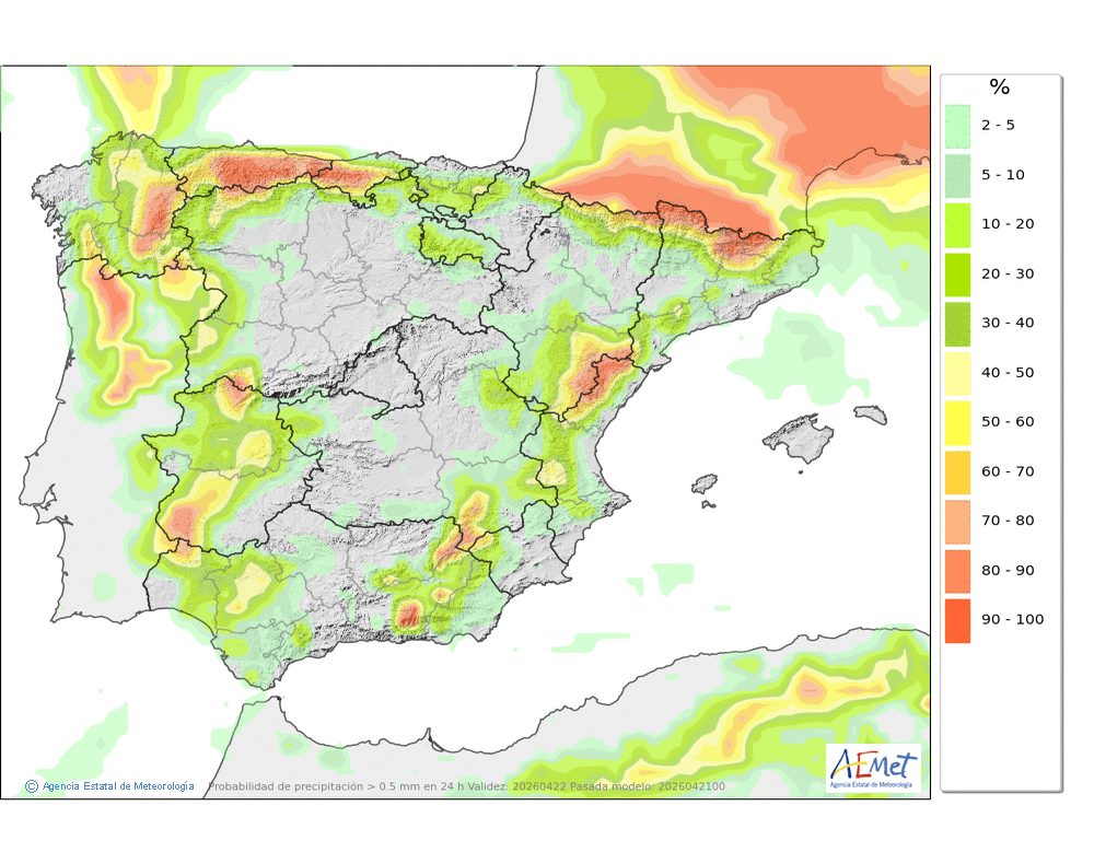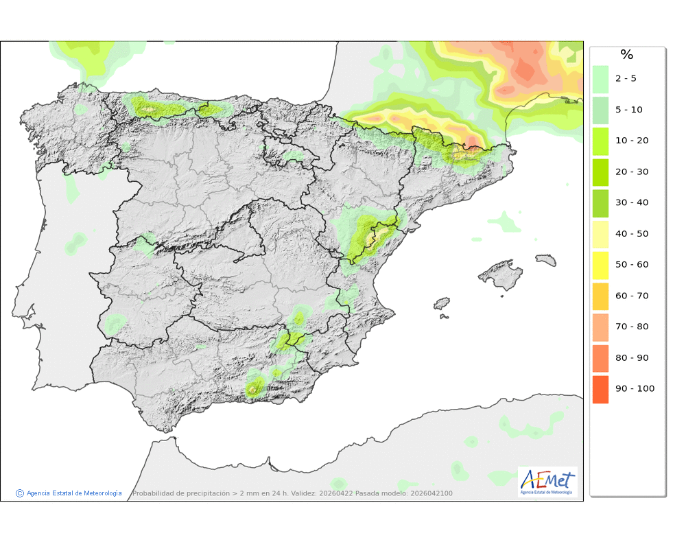 Se esperan chubascos ocasionales, más probables durante la segunda mitad del día, cuando no se descarta que en algún caso puedan ser localmente fuertes y con granizo.
