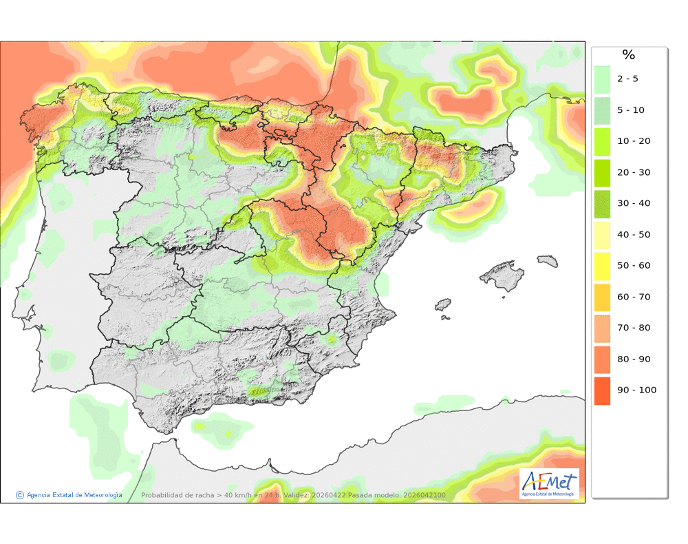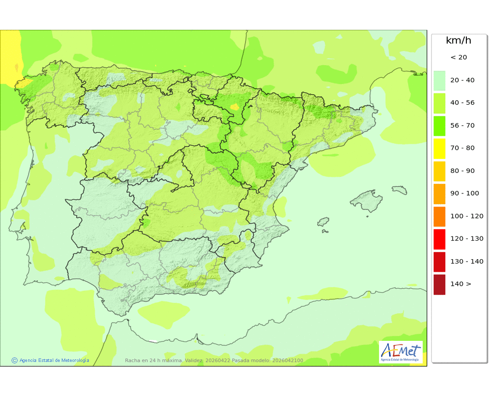Soplarán vientos flojos o moderados de componente sur, que serán fuertes, racheados y de dirección variable durante los chubascos o tormentas.
