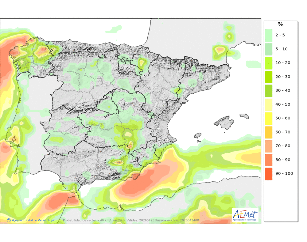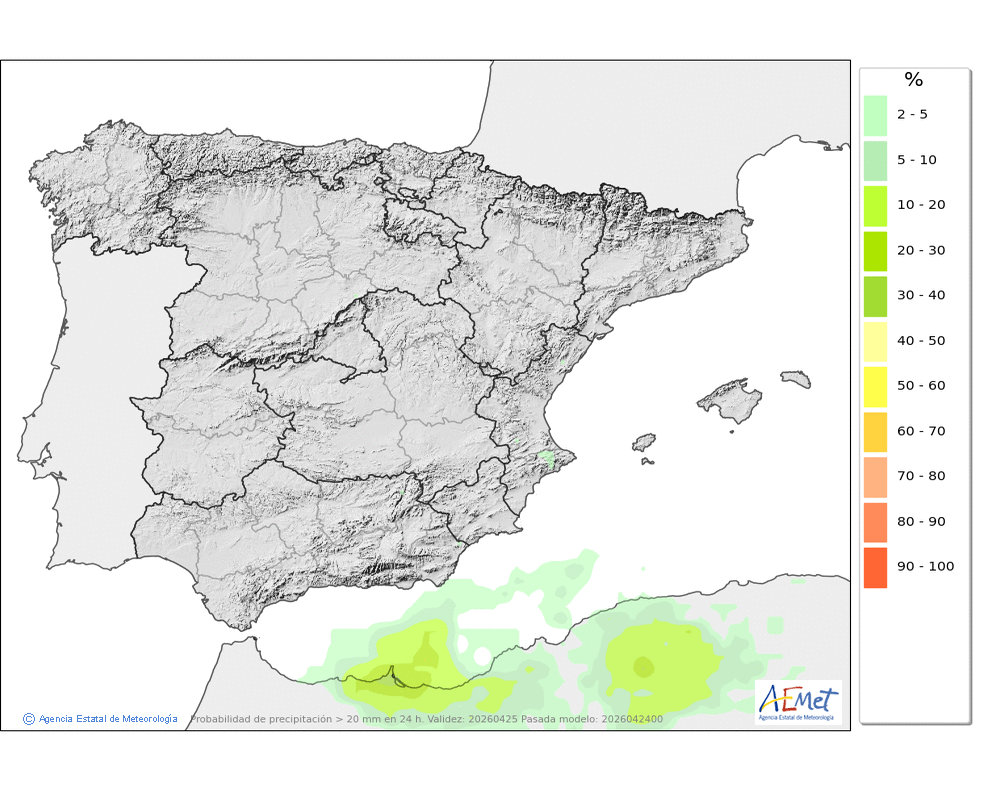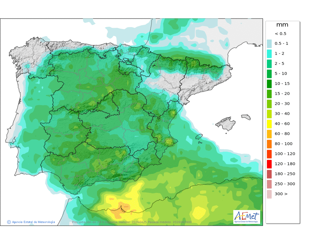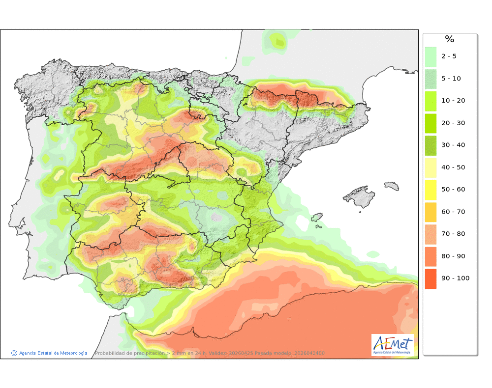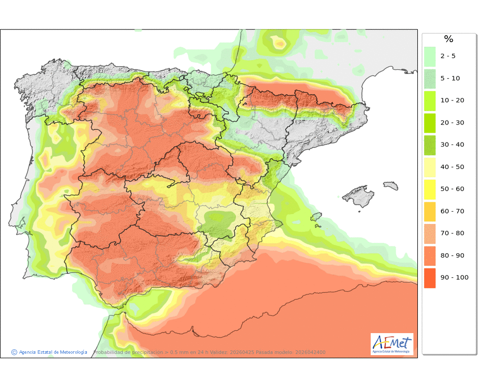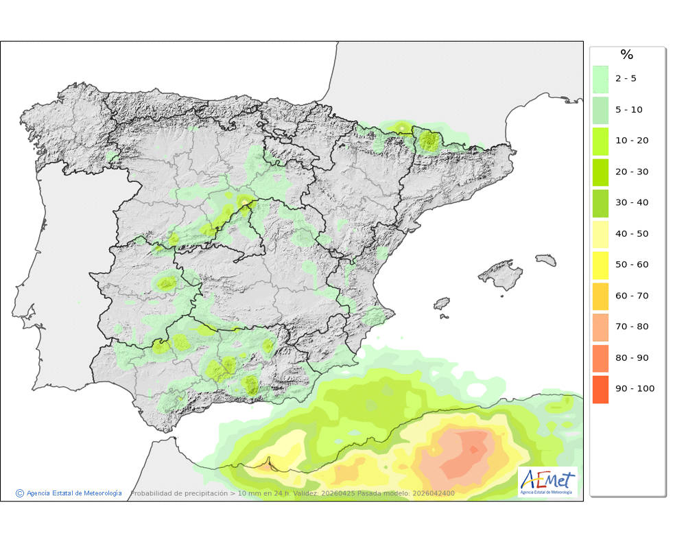 Se esperan chubascos dispersos e intermitentes a lo largo del día aunque más probables durante la segunda mitad.
