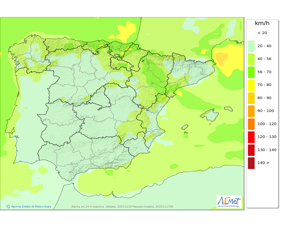 Soplarán vientos moderados del norte y noroeste, con intervalos de intensidad fuerte. Rachas muy fuertes en cotas altas y zonas expuestas.