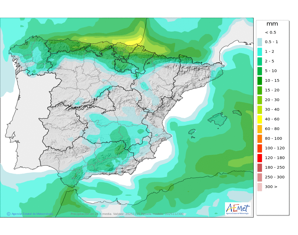 Lluvias y chubascos, probables a lo largo de todo el día. Cota de nieve en descenso, de 1300 a 1000 metros.