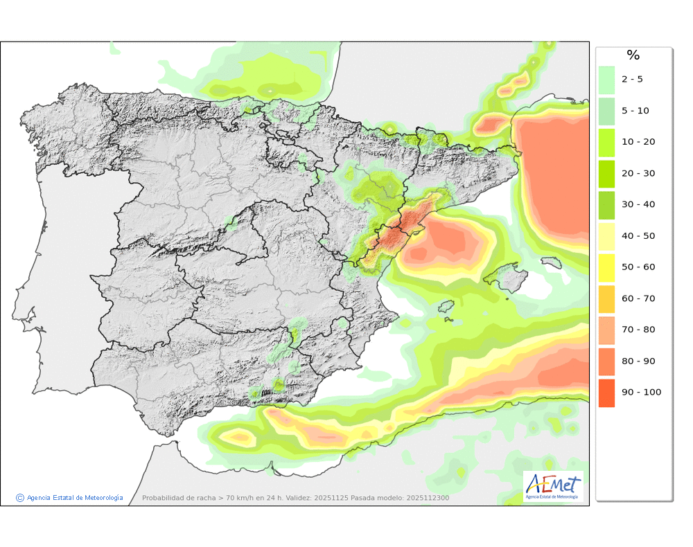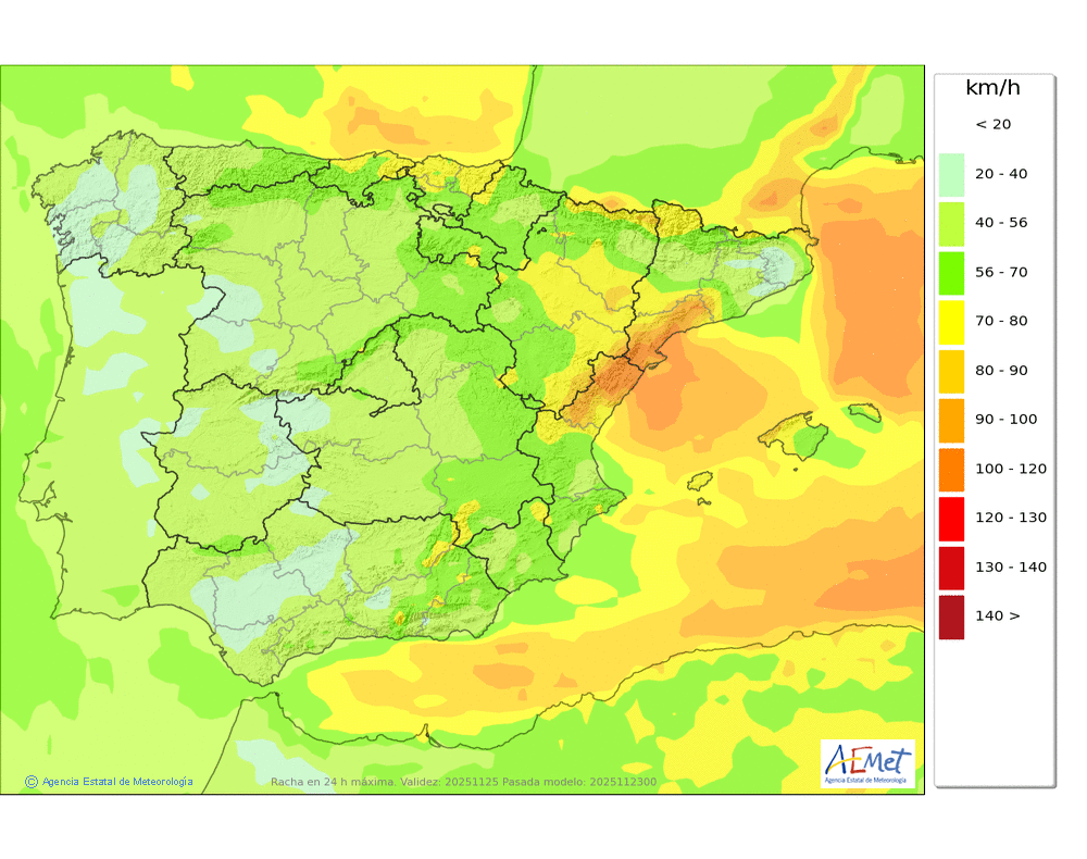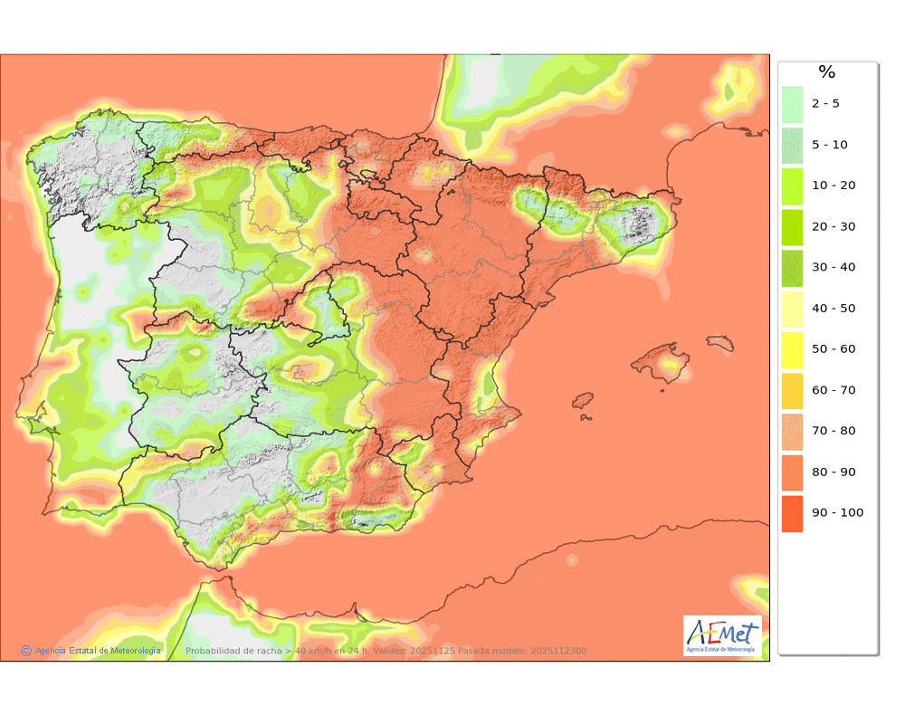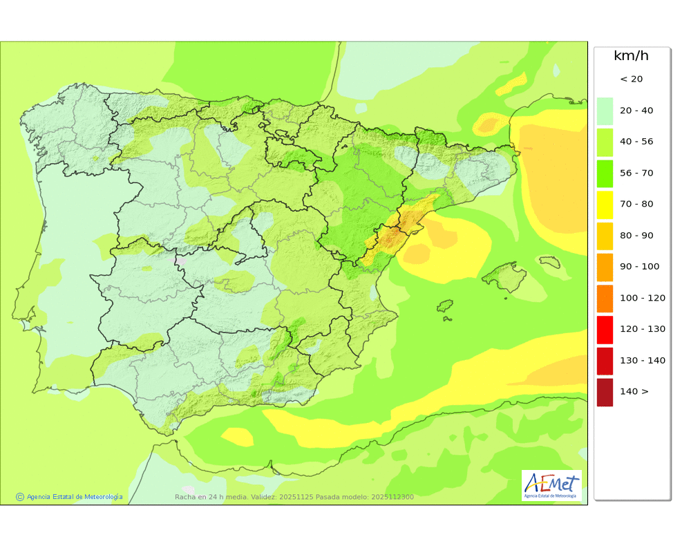 Moderado o fuerte del noroeste, con probables rachas muy fuertes en cotas altas y zonas expuestas.