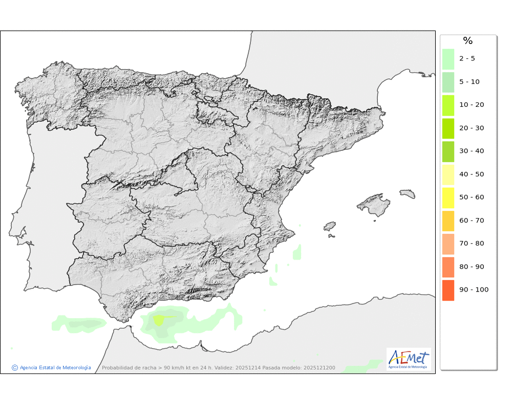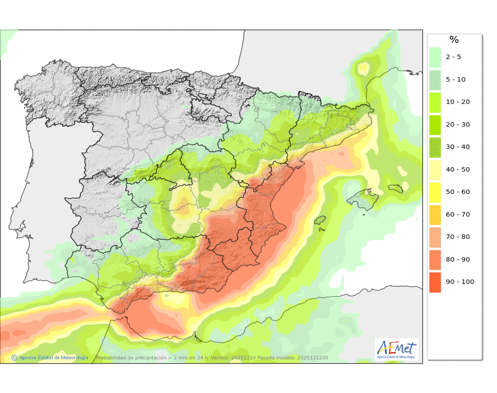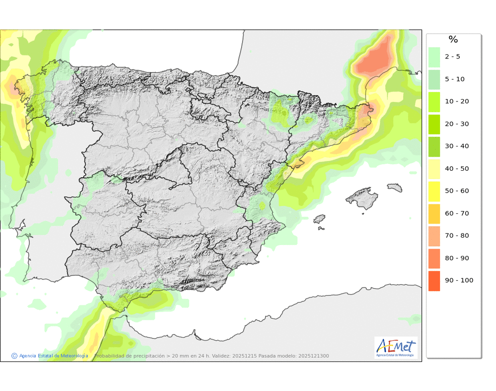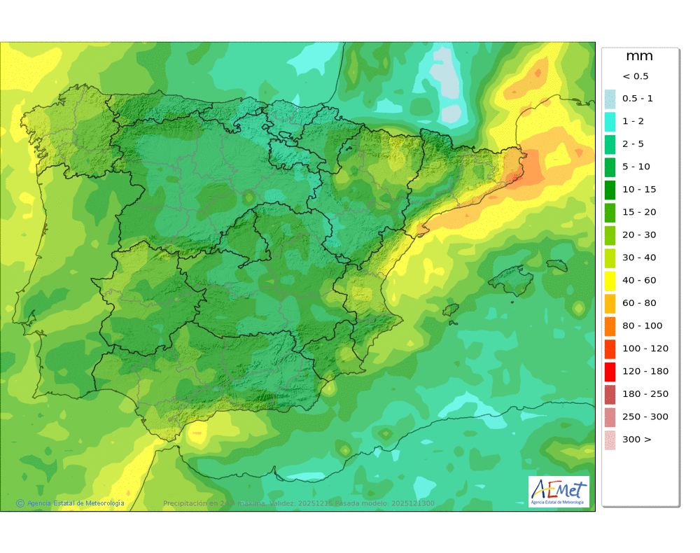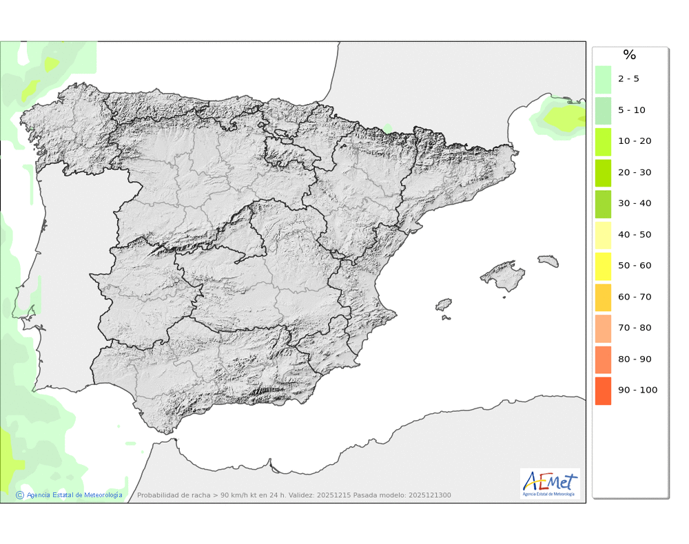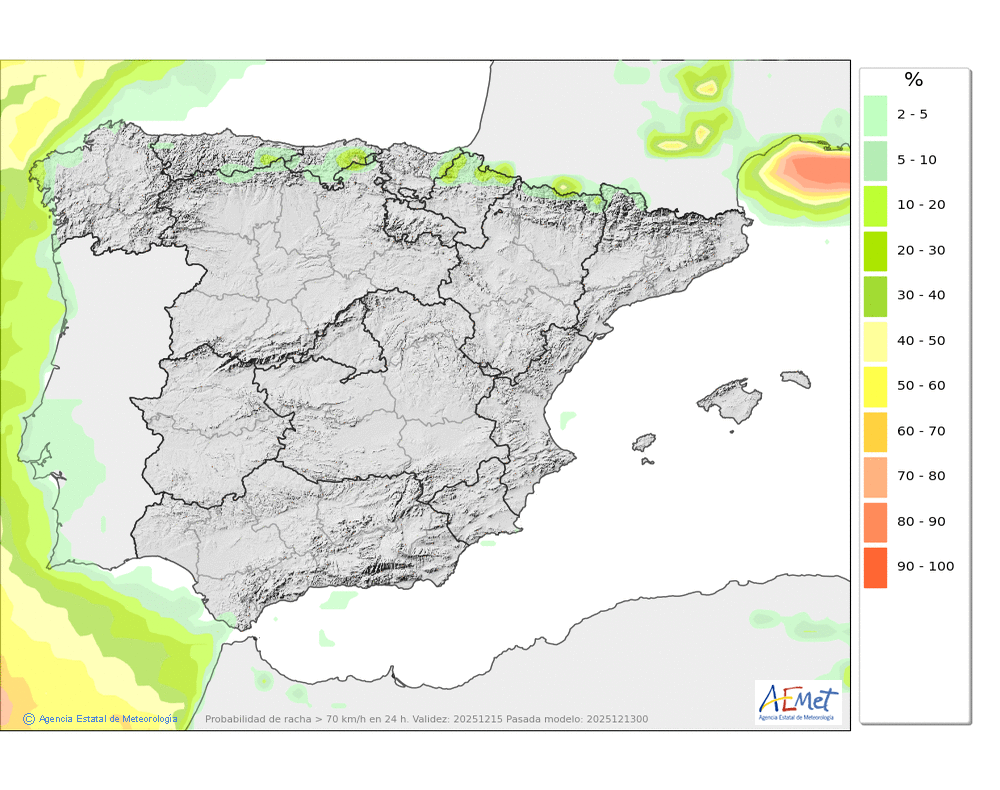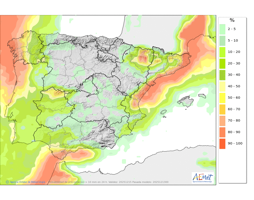 Probables lluvias débiles y chubascos ocasionales. Cota de nieve en torno a unos 1700 metros aproximadamente.