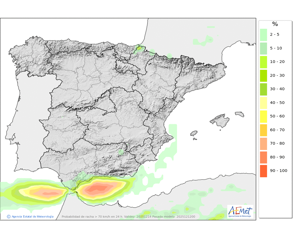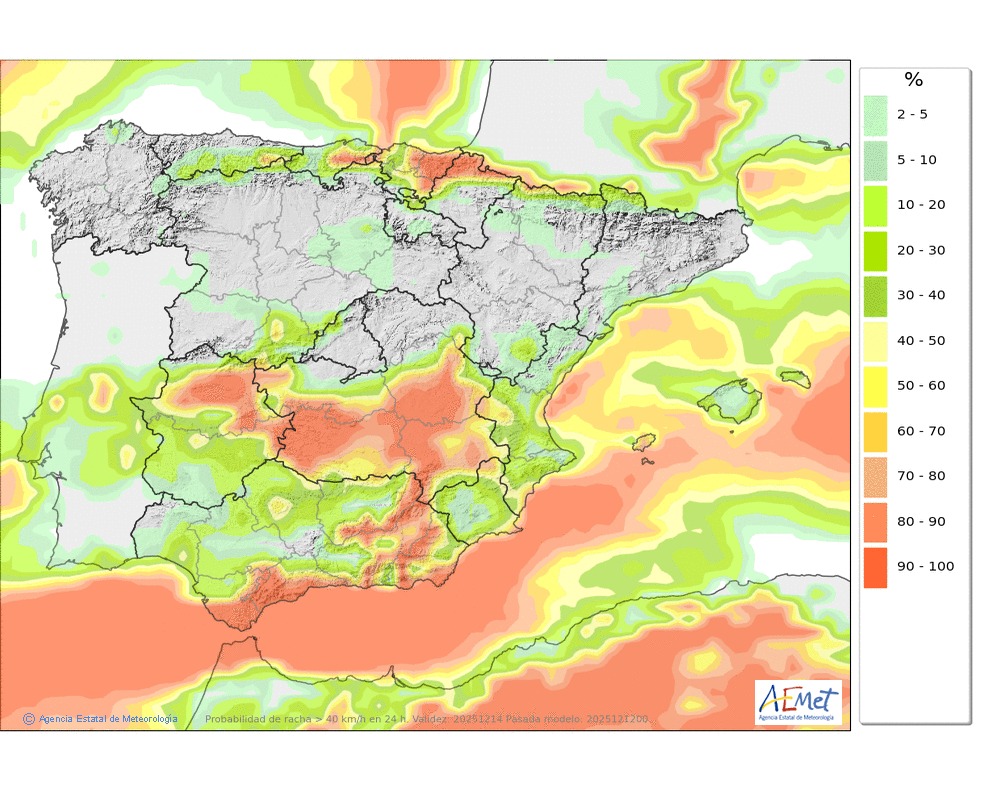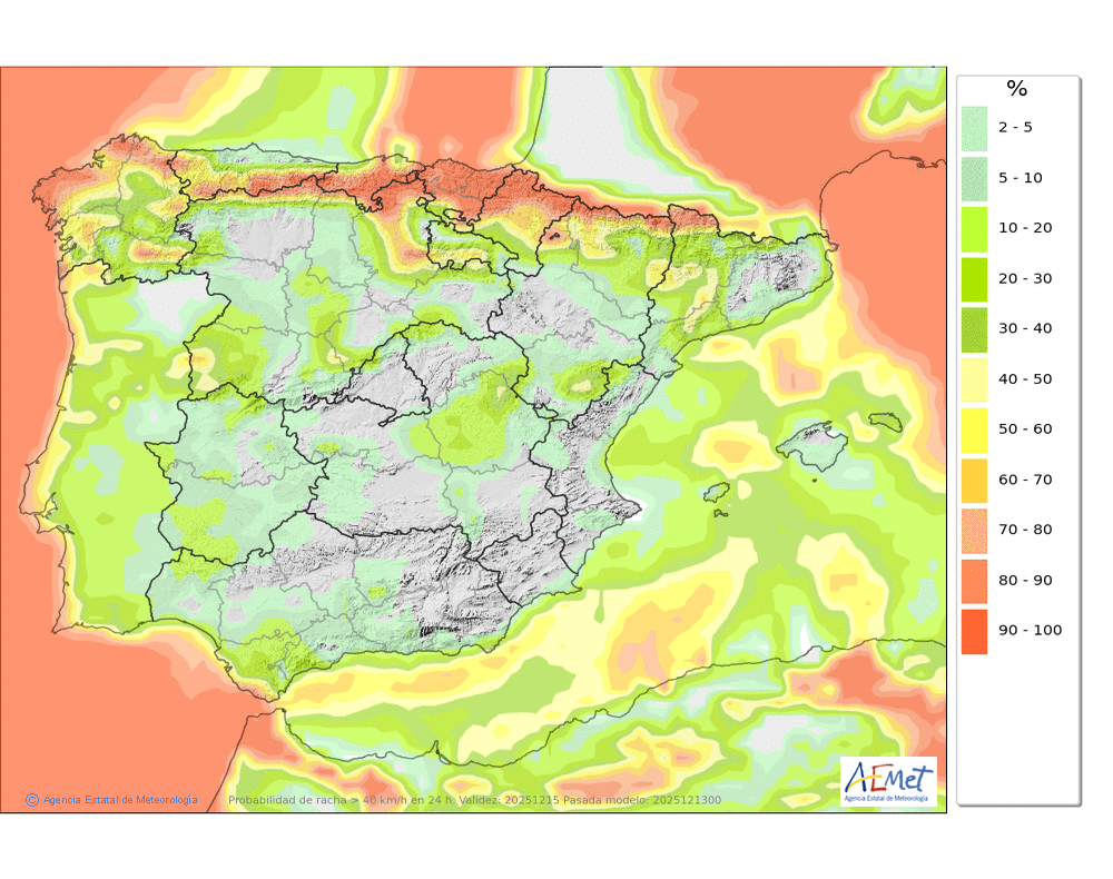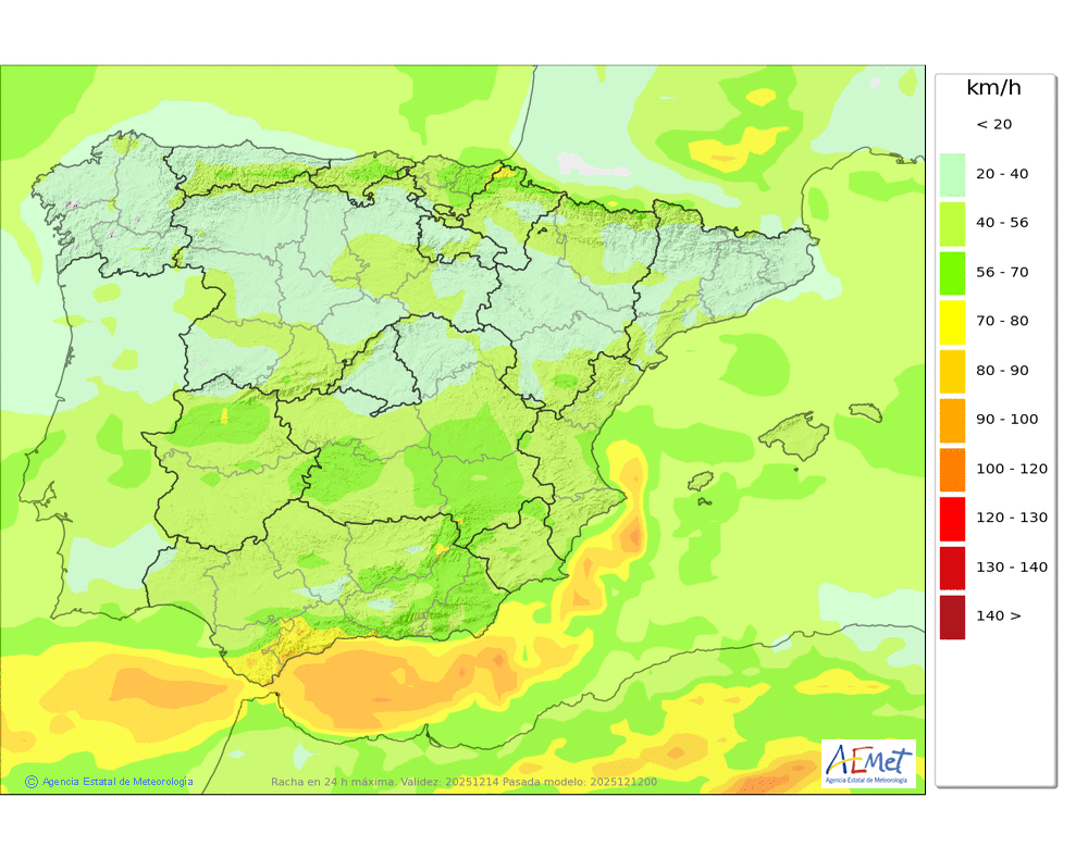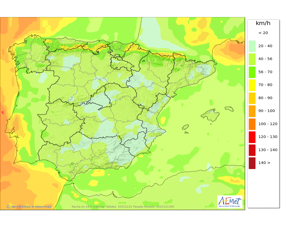 Flojo o moderado, de componente sur tendiendo a componente norte, sin descartarse rachas fuertes en cotas altas y zonas expuestas.