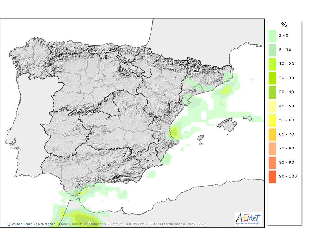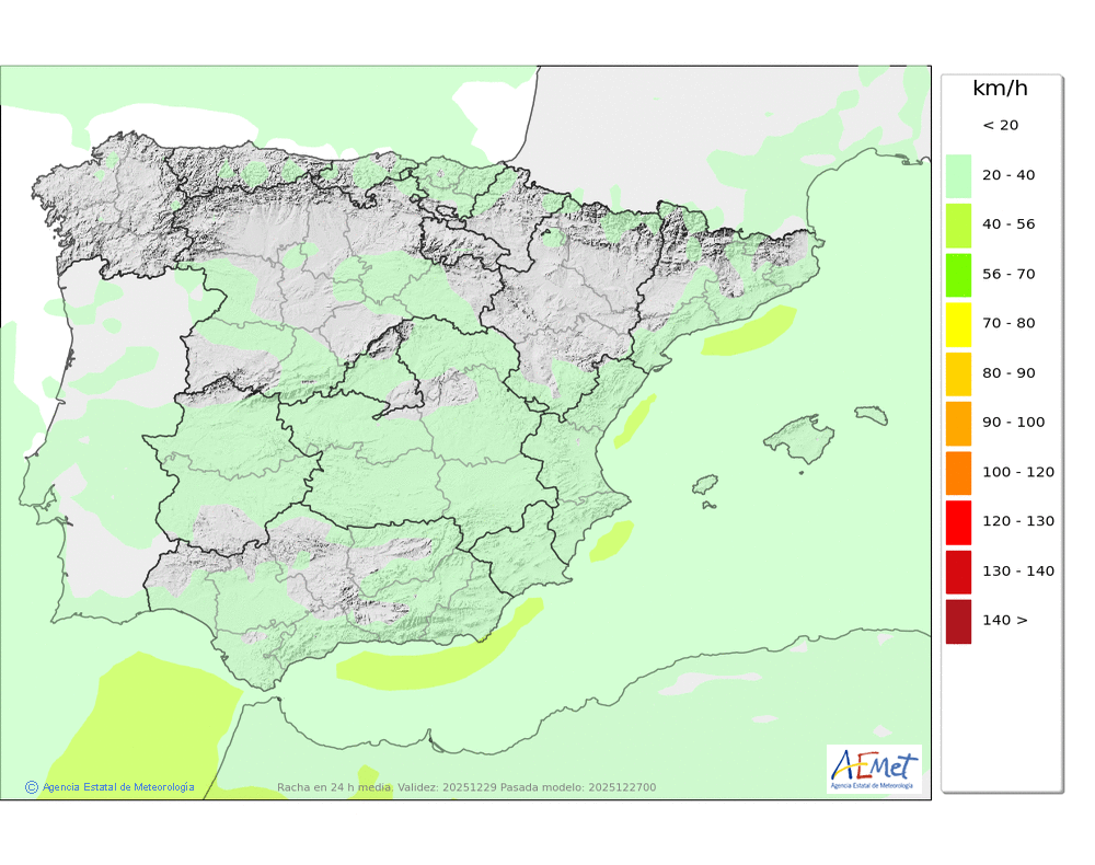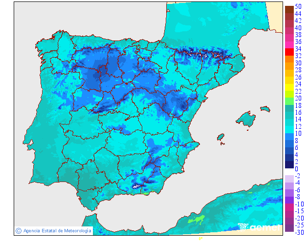 Mínimas en ligero o moderado descenso, y máximas en ligero ascenso. Heladas débiles en cotas altas y algunos fondos de valle.