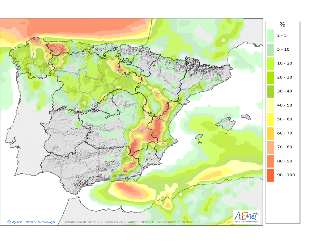Soplarán vientos moderados o fuertes del oeste y sudoeste, con rachas muy fuertes en cotas altas y zonas expuestas.