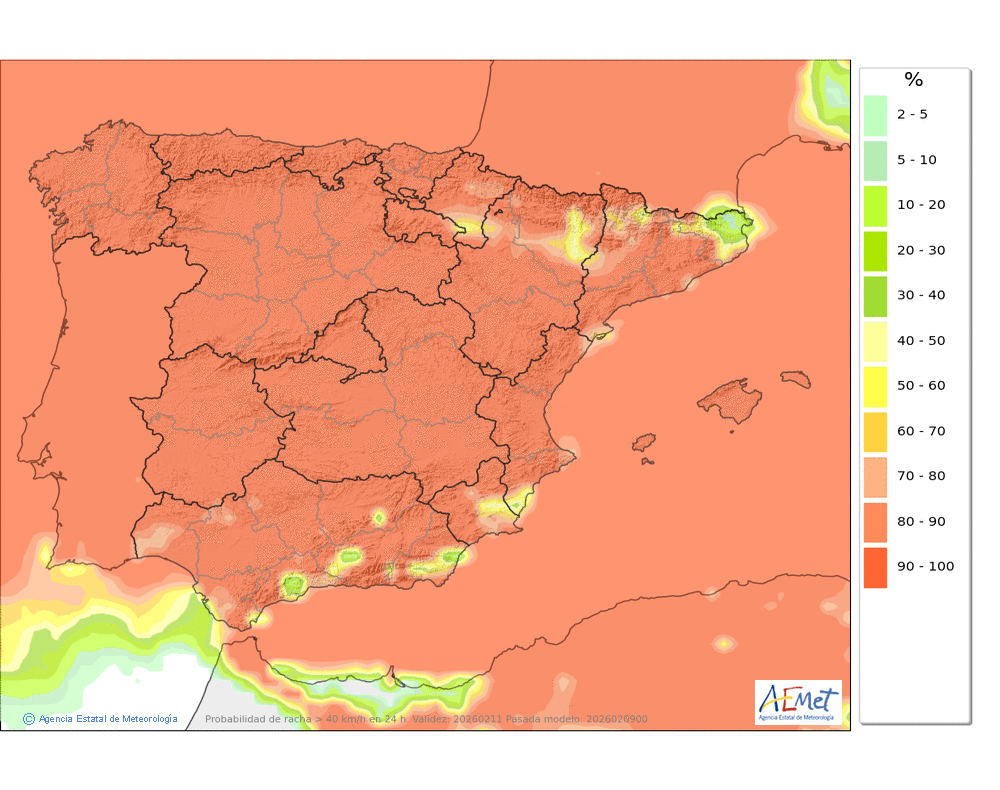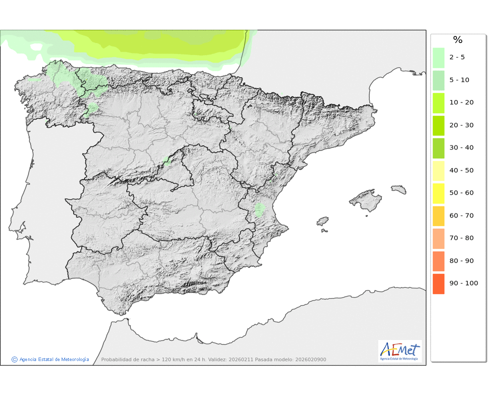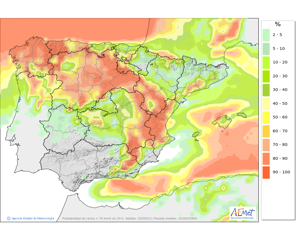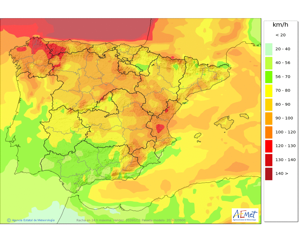 Soplarán vientos fuertes de componente oeste, con rachas muy fuertes, principalmente en cotas altas y zonas expuestas, donde no se descarta que puedan ser huracanadas.
