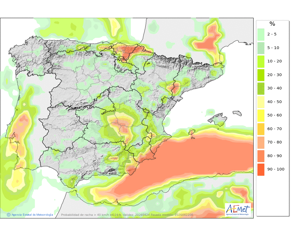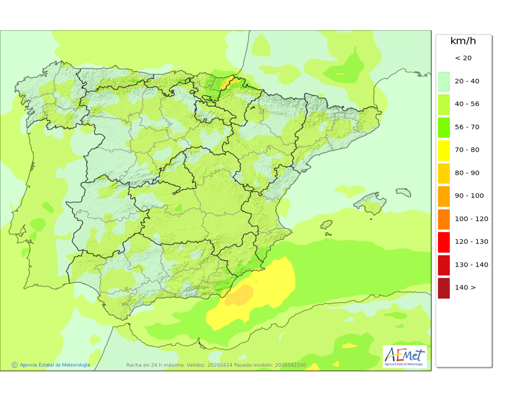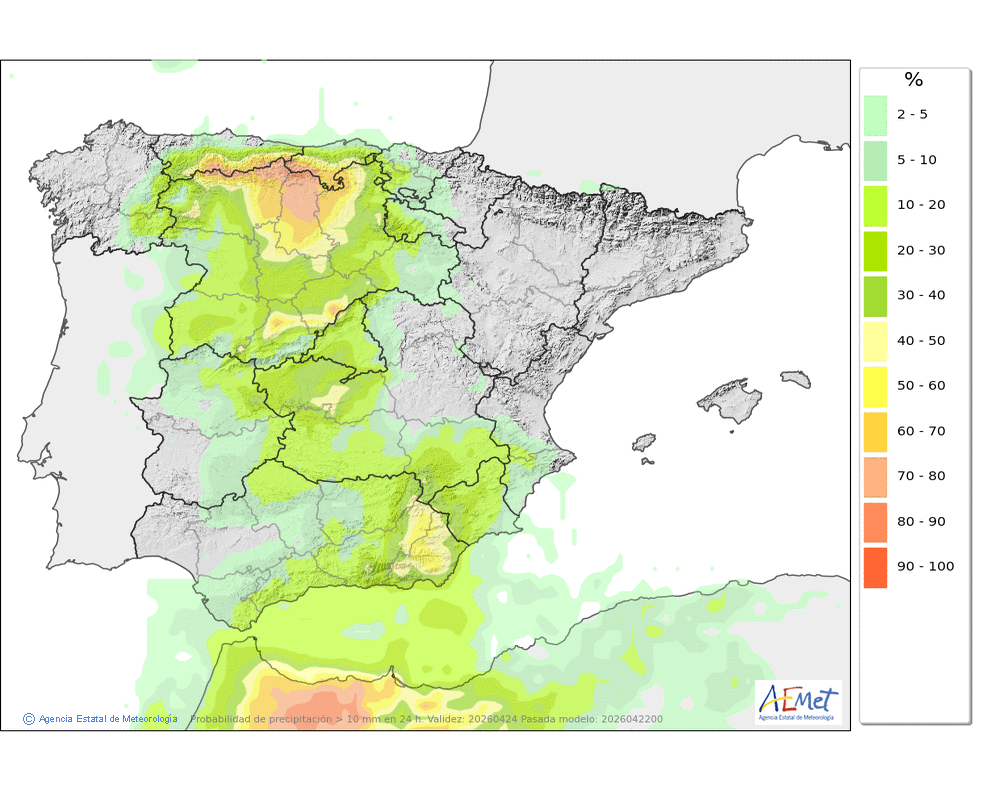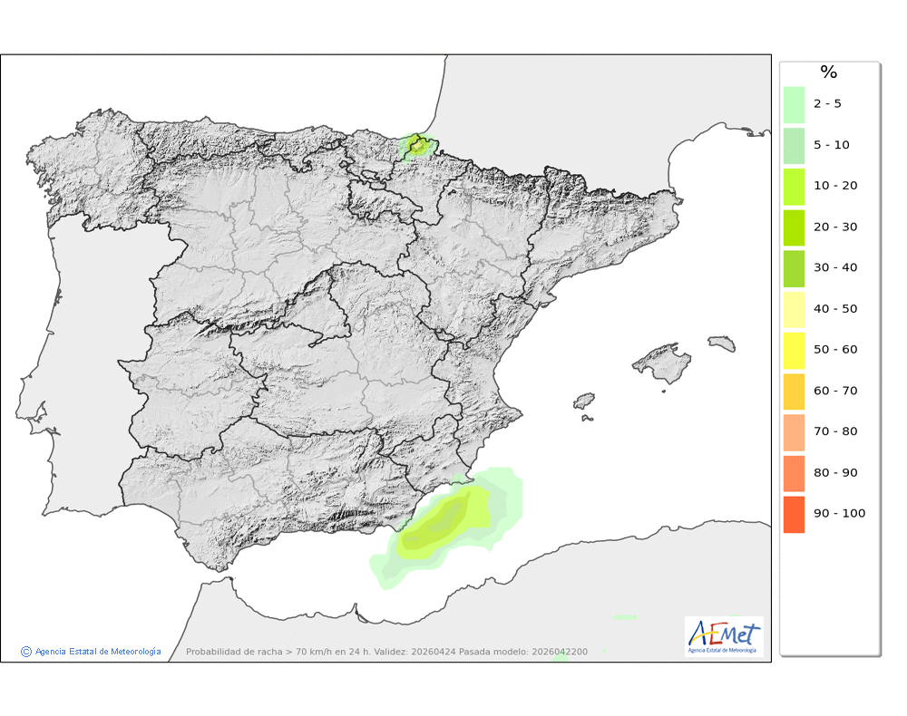 En ligero descenso, localmente moderado, salvo en las máximas de la mitad occidental donde ascenderán ligeramente.