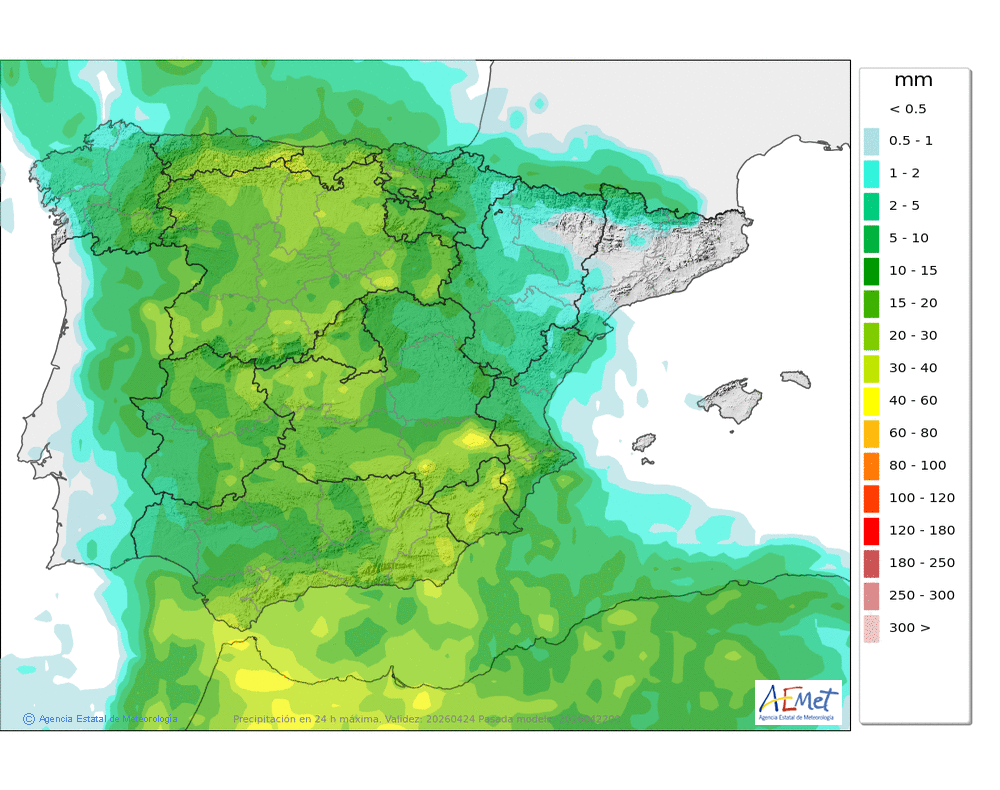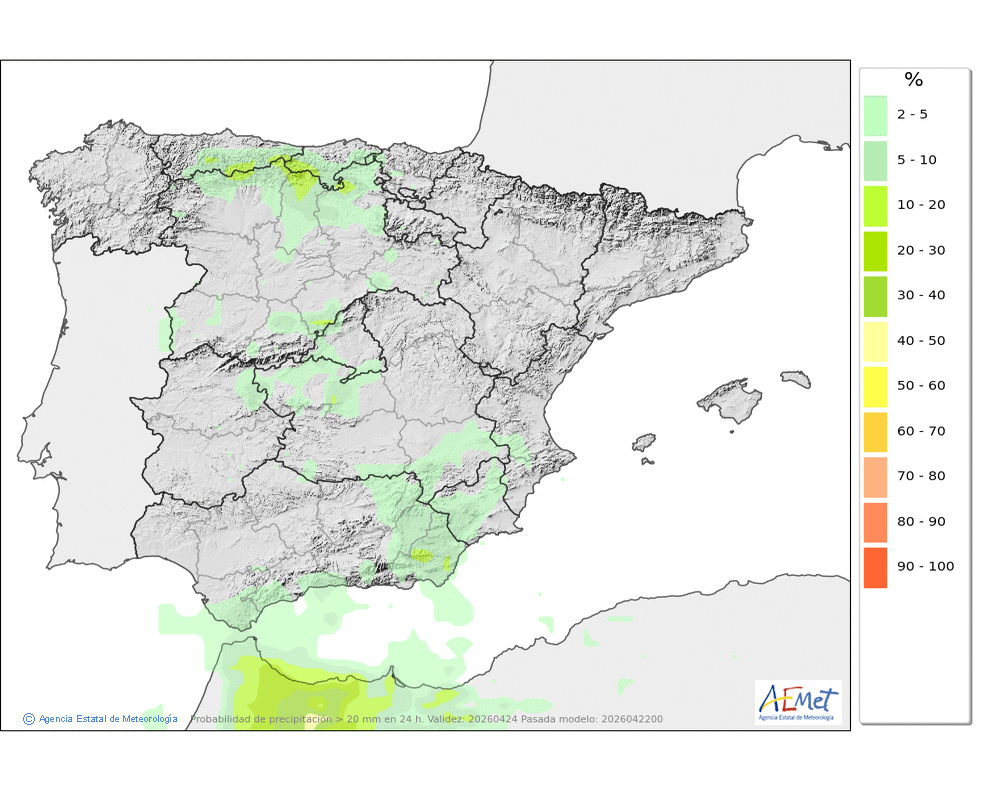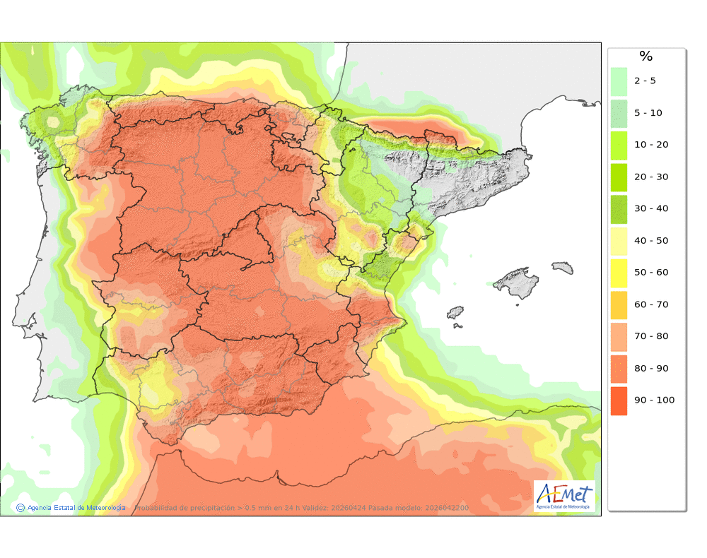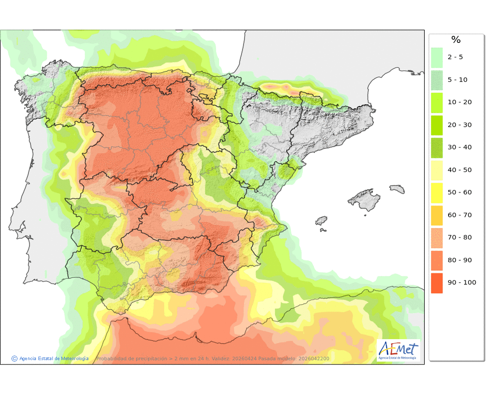 En ligero descenso, localmente moderado, salvo en las máximas de la mitad occidental donde ascenderán ligeramente.