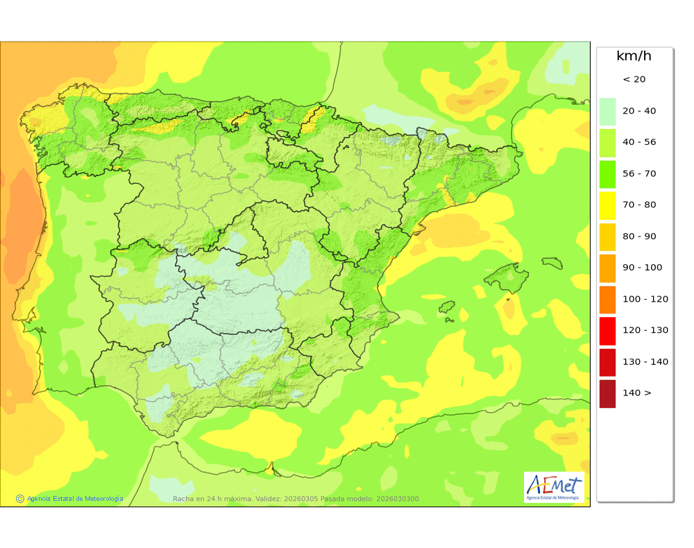 En descenso, generalmente ligero. Las mínimas podrán registrarse al final del día. Heladas débiles en cotas altas.
