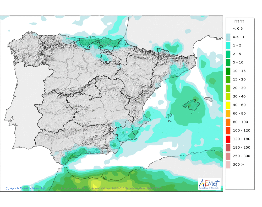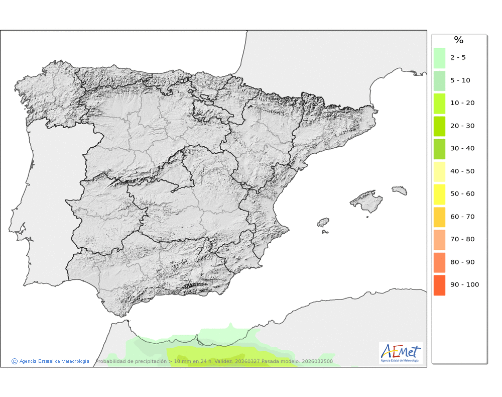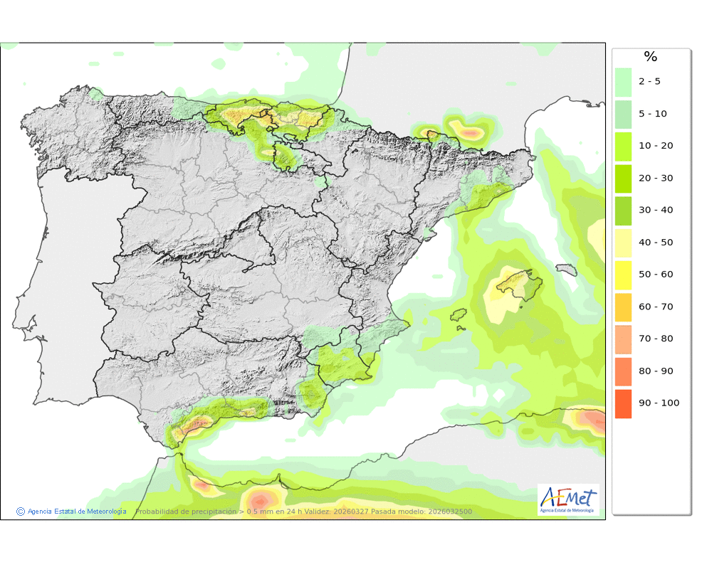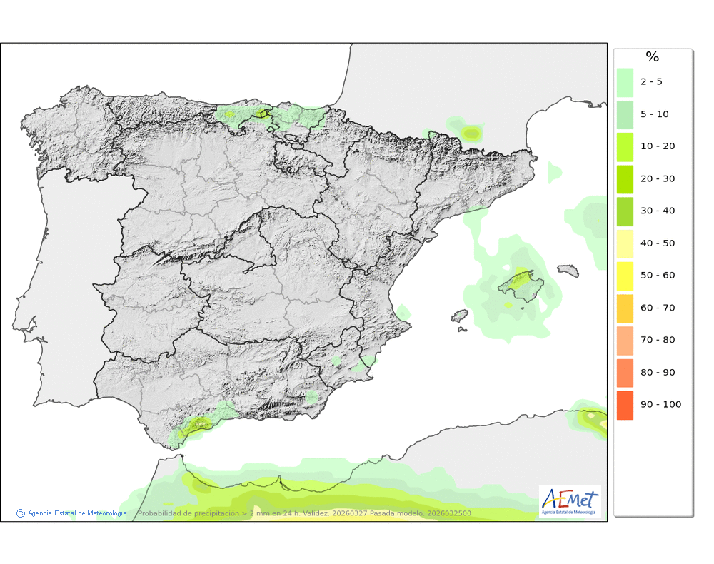 No se descartan lloviznas ocasionales en el norte, asociadas a la nubosidad baja. Cota de nieve entre 1000 y 1400 metros.