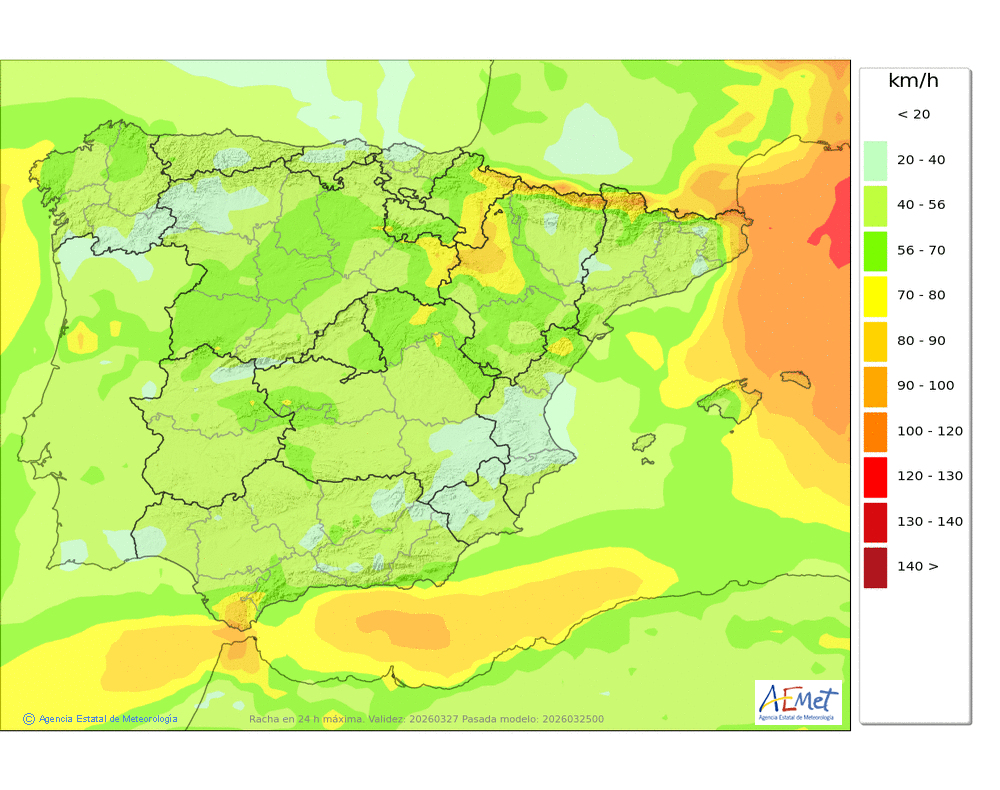 Moderado de componente norte, con intervalos de fuerte en cotas altas y zonas expuestas, aflojando en el transcurso del día.