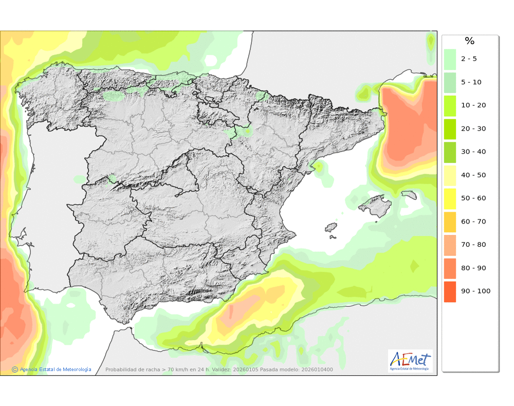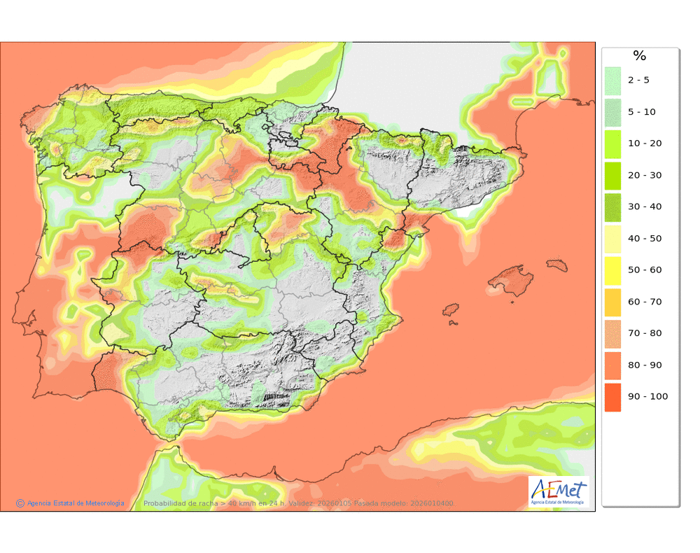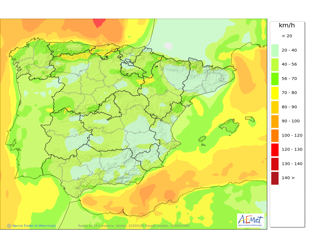 Moderado o fuerte de componente norte. Probables rachas muy fuertes en cotas altas.