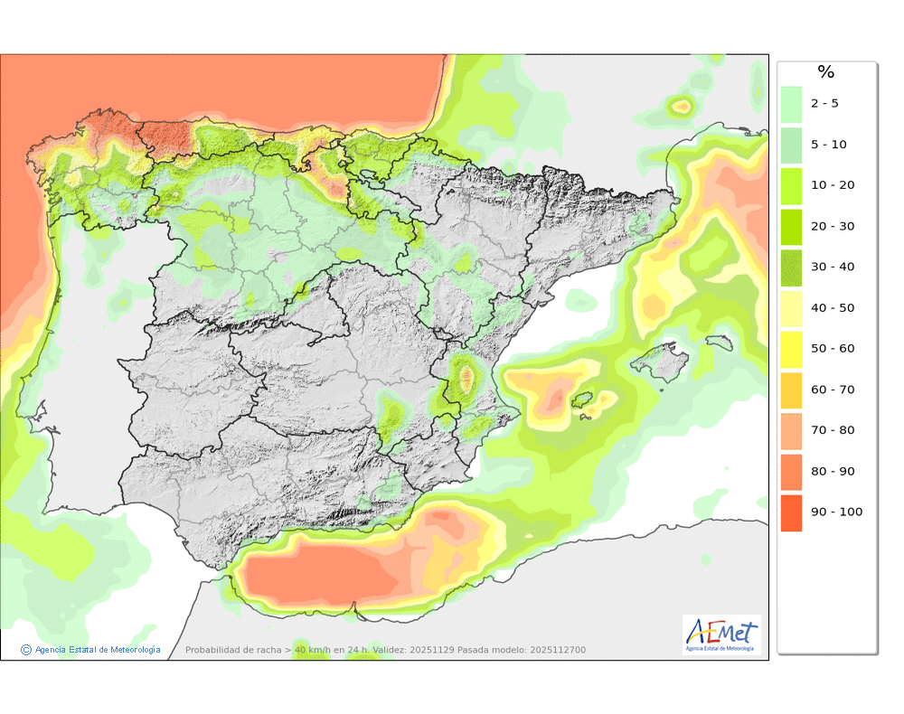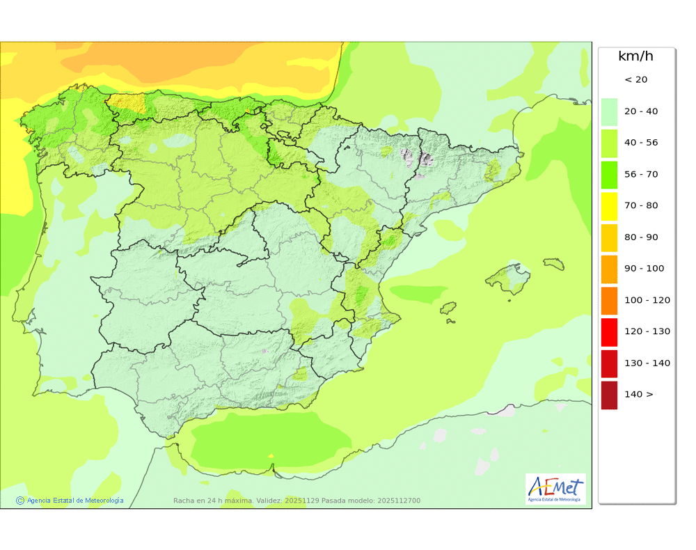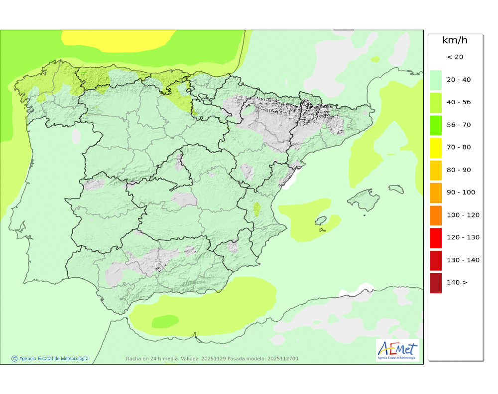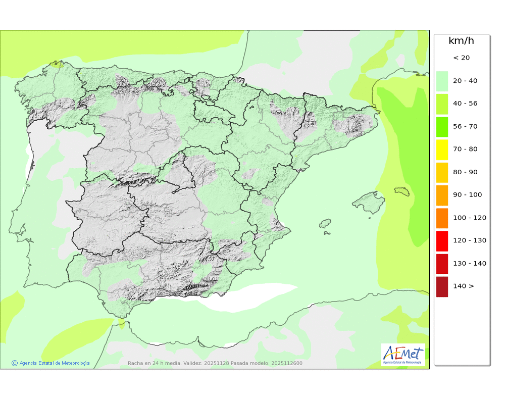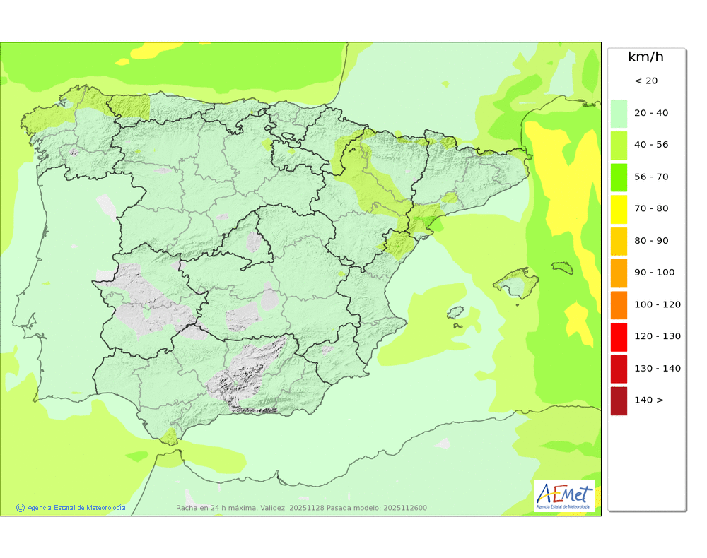 De componente oeste en cotas altas. En el resto, flojo de dirección variable tendiendo al final del día a moderado del noroeste.