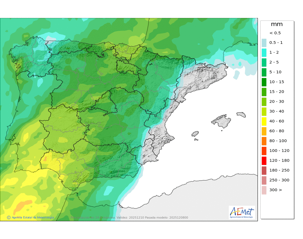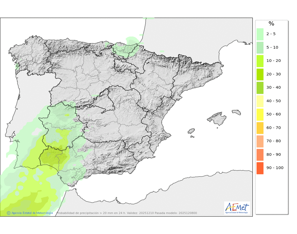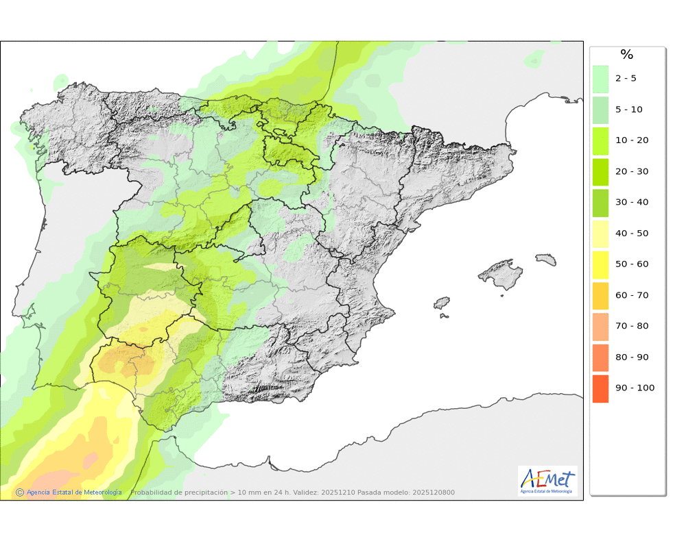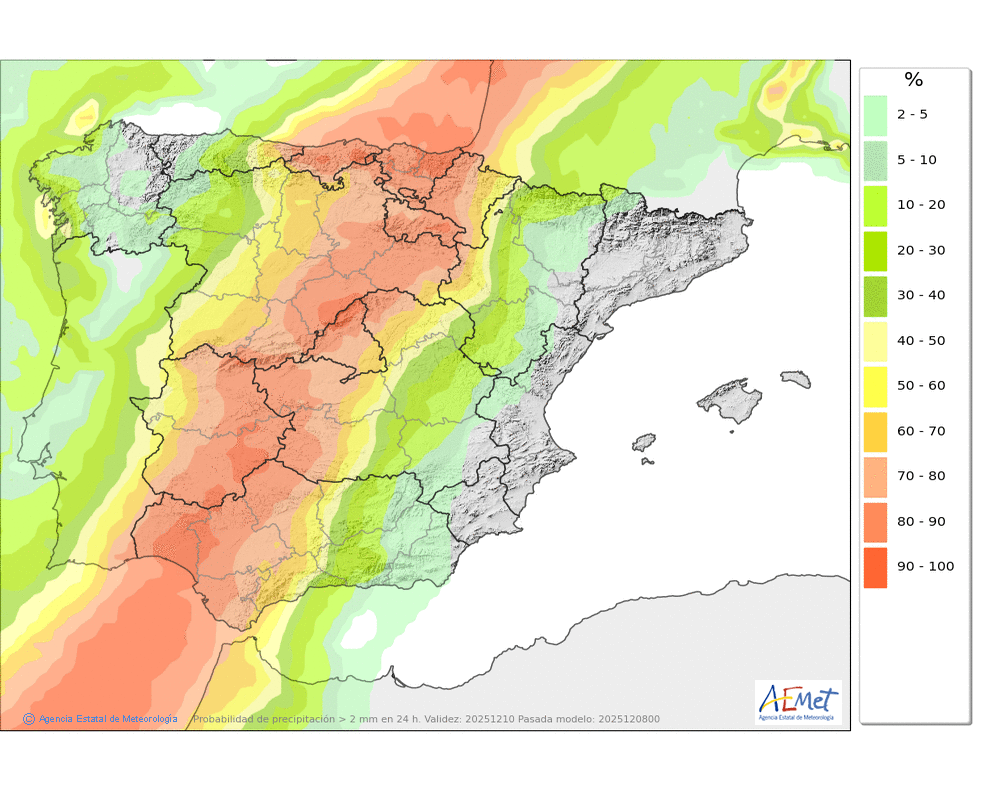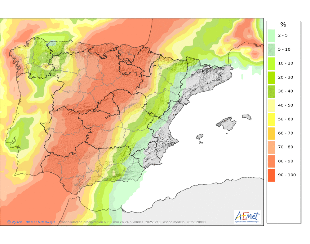 Heladas débiles en la alta montaña y algún fondo de valle,