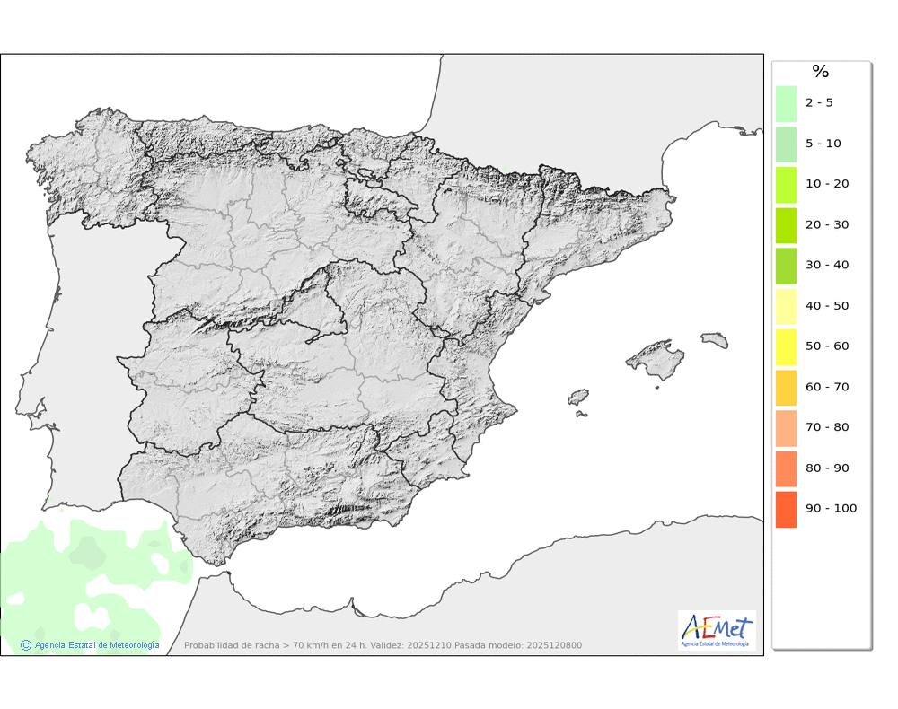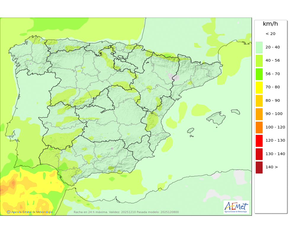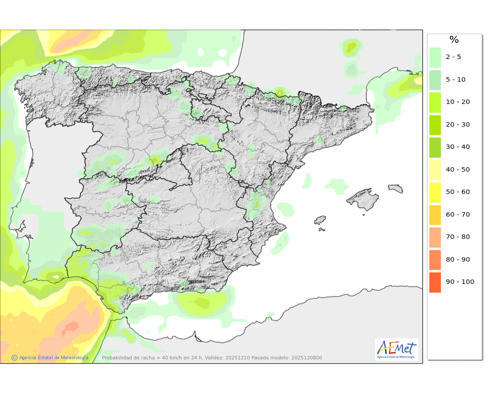 Viento en la atmósfera libre a 3000 m: SW 40 km/h