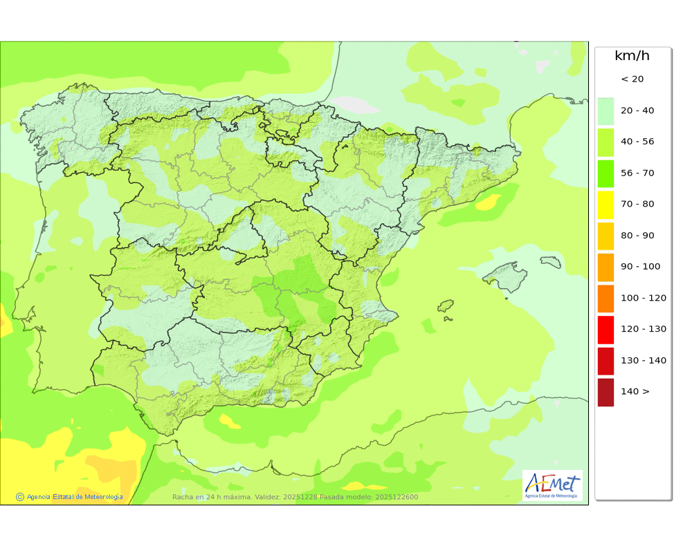 fuerte, más intenso en cotas altas y zonas expuestas,