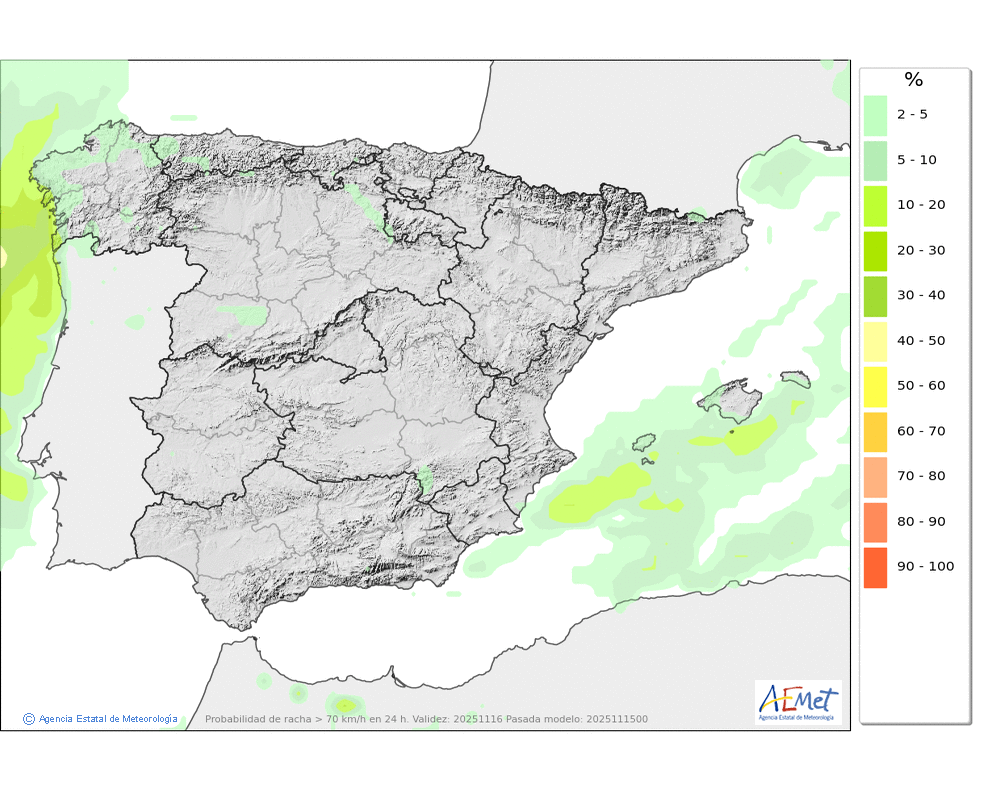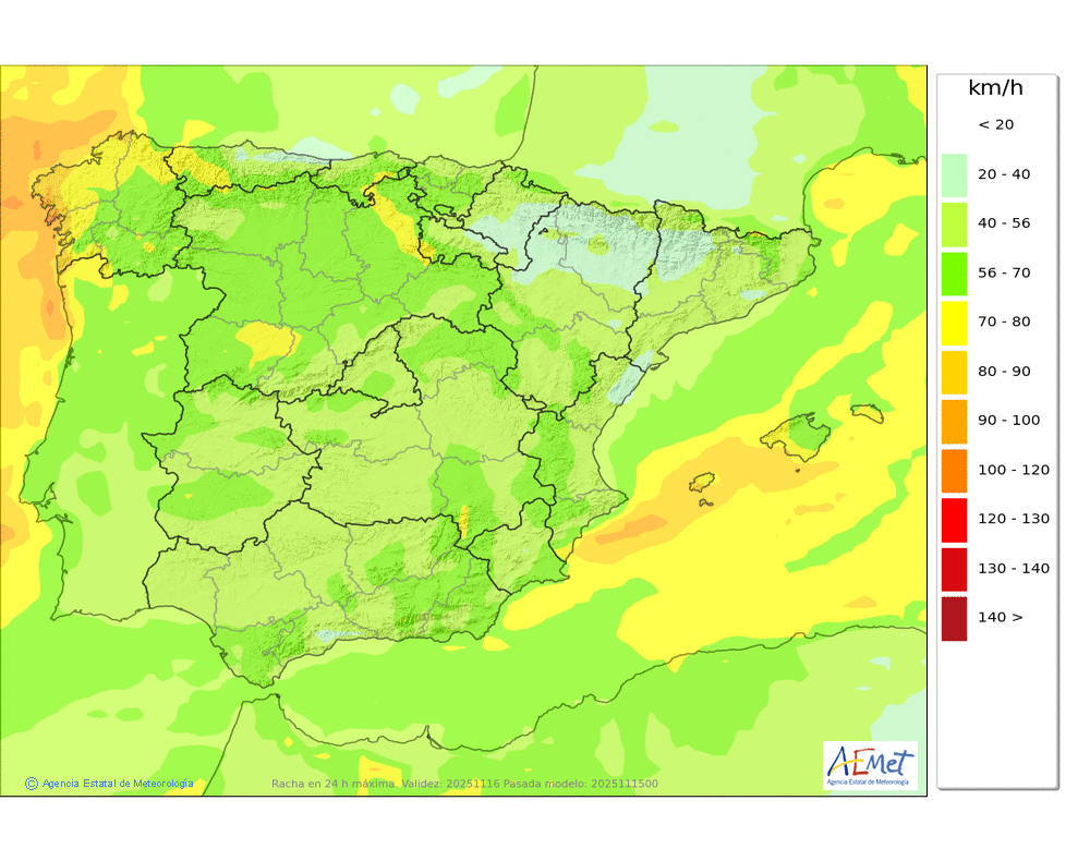 Soplarán vientos flojos o moderados de componente oeste, salvo de madrugada en cotas altas cuando será fuerte con rachas muy fuertes.