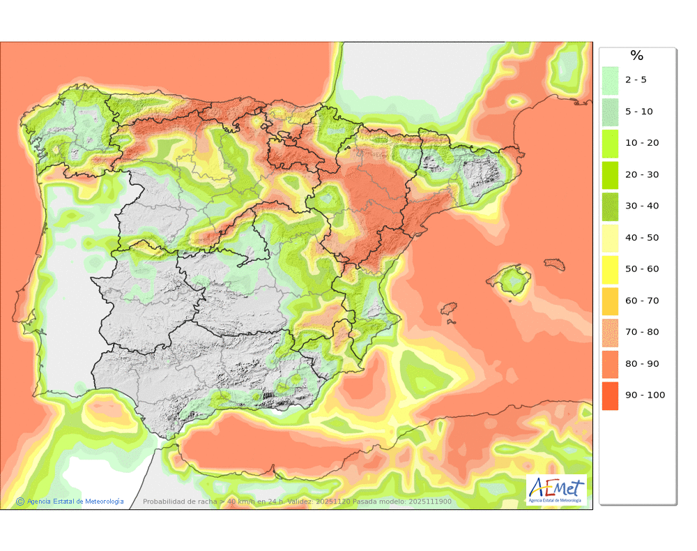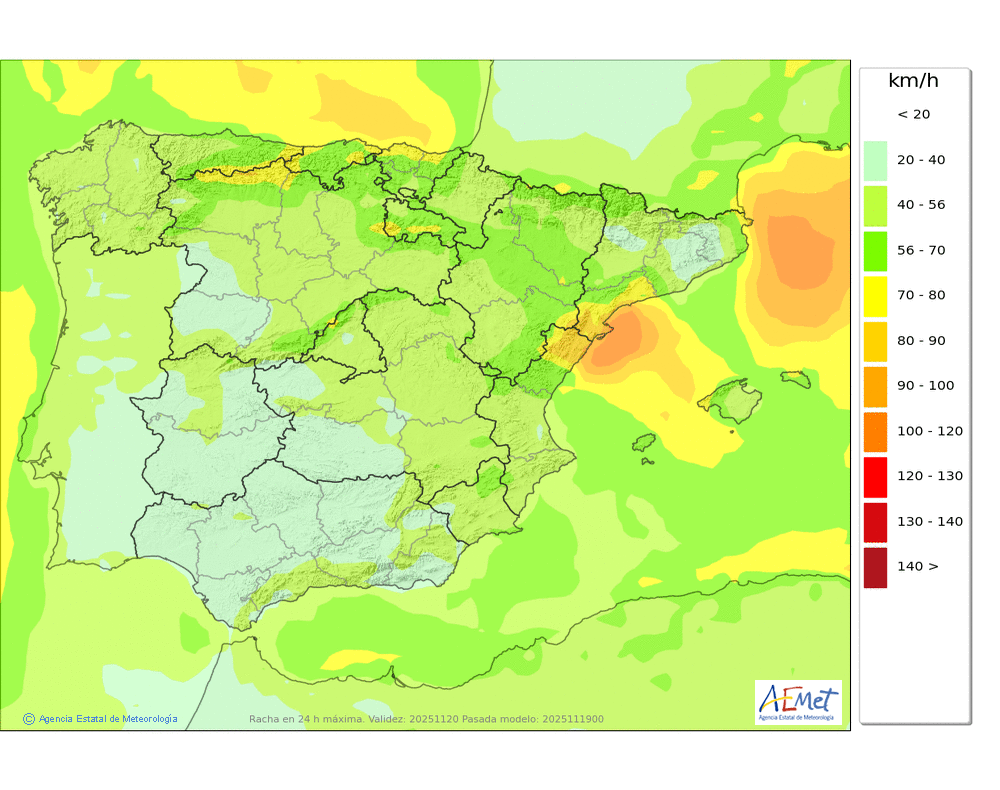 Soplarán vientos moderados del norte y noroeste, con intervalos de intensidad fuerte en cotas altas y zonas expuestas, donde podrá haber rachas muy fuertes.