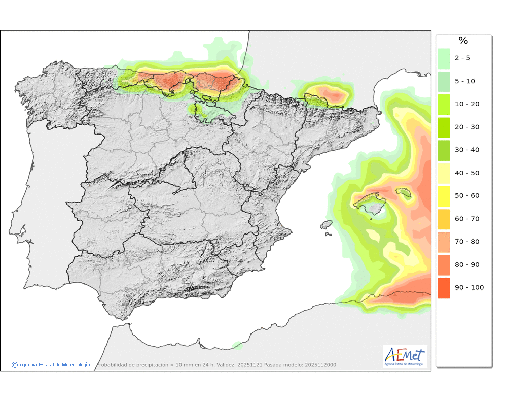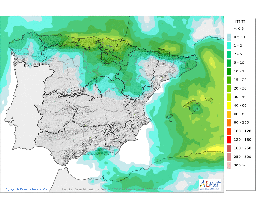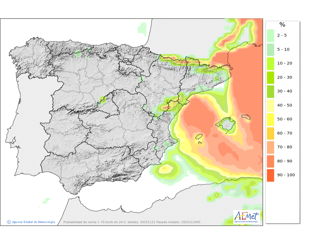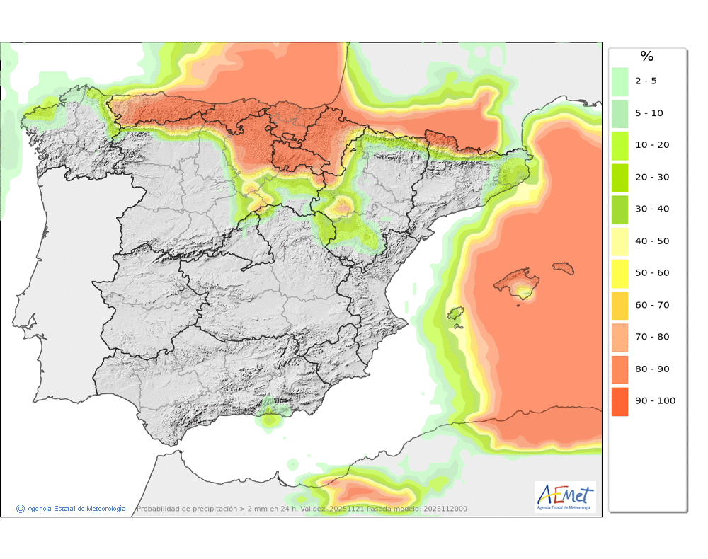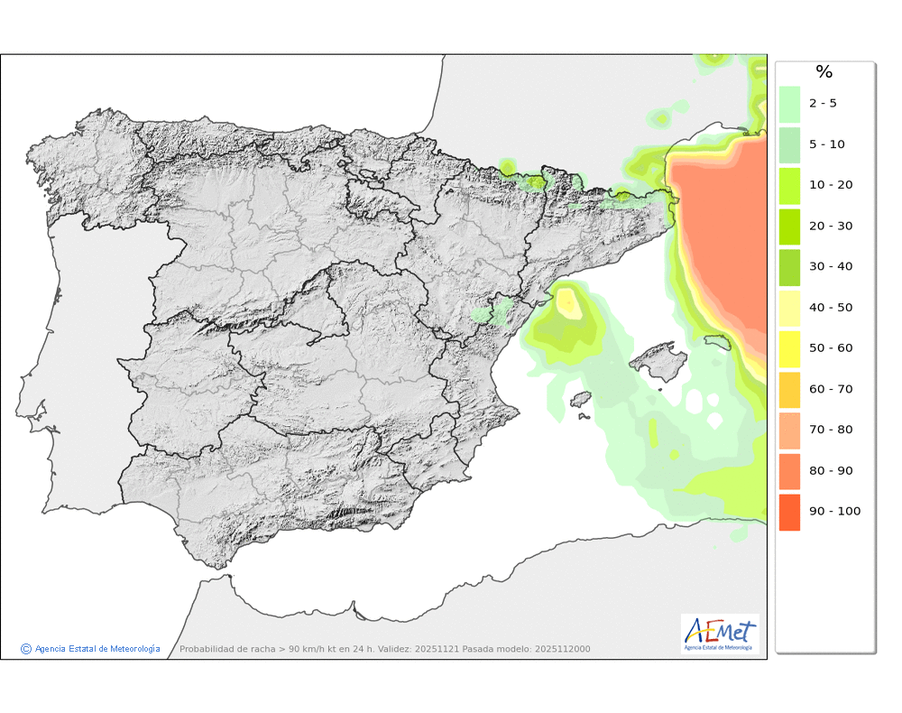Se esperan nevadas débiles o localmente moderadas en el valle de Arán y Franja Norte Pallaresa, que podrán afectar de manera más ocasional al resto de la divisoria con Francia, siendo ya poco probables en el resto. Probables ventiscas acompañando a las nevadas.
