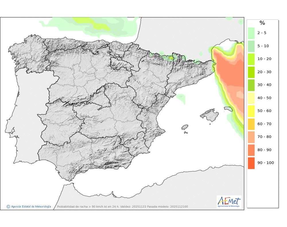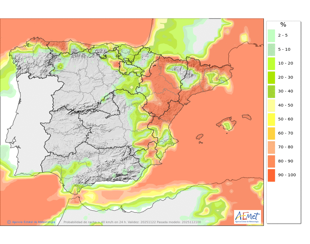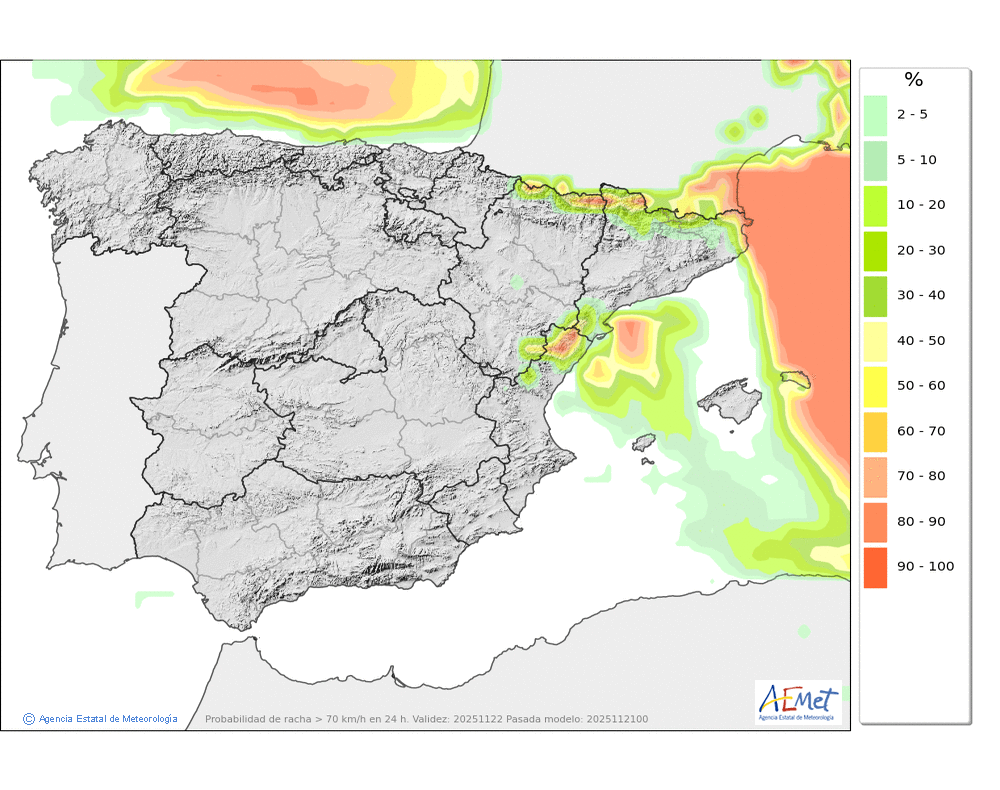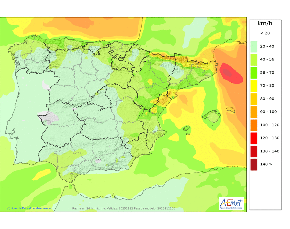 VIENTO: moderado de noroeste y oeste; fuerte en cotas altas. Rachas muy fuertes de 78.8 km/h en Naut Aran.