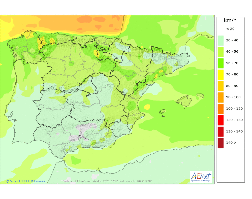 Moderado o fuerte de componente oeste. No se descartan rachas muy fuertes en cotas altas y zonas expuestas durante la primera mitad del día.