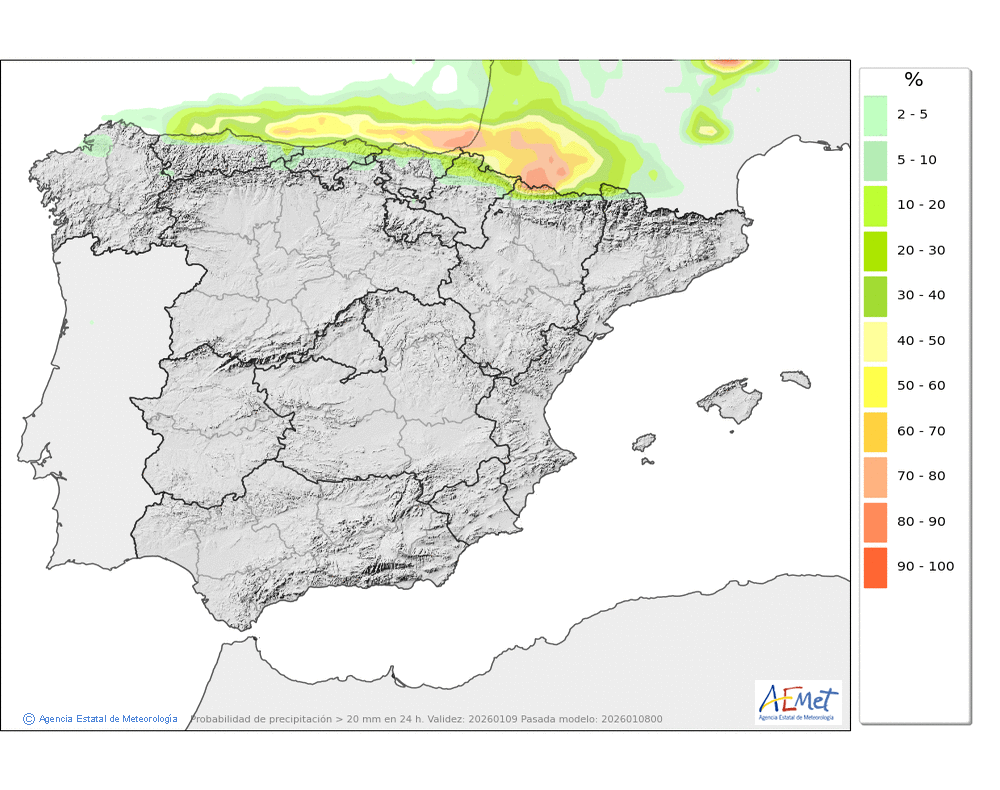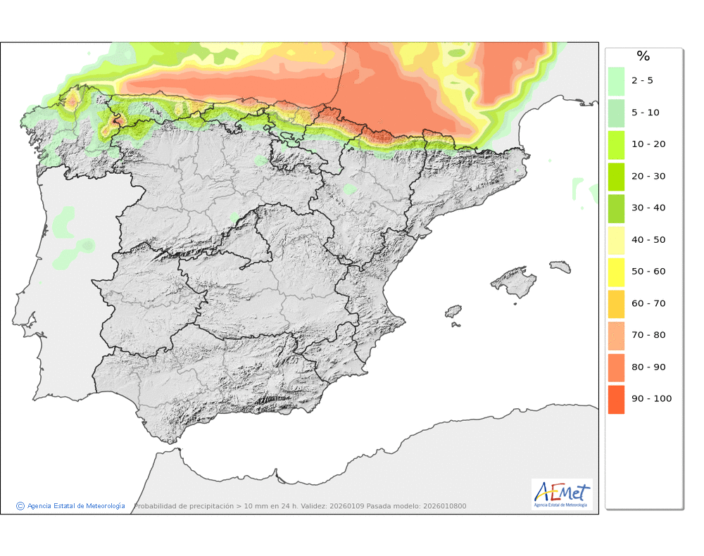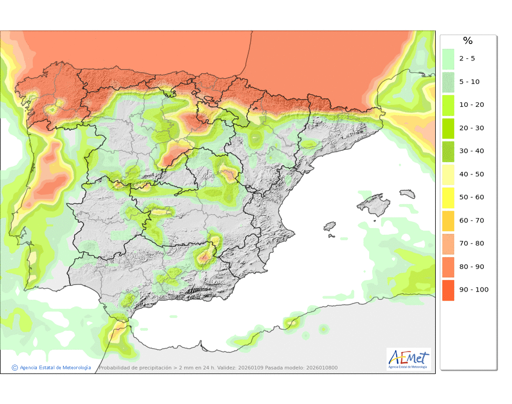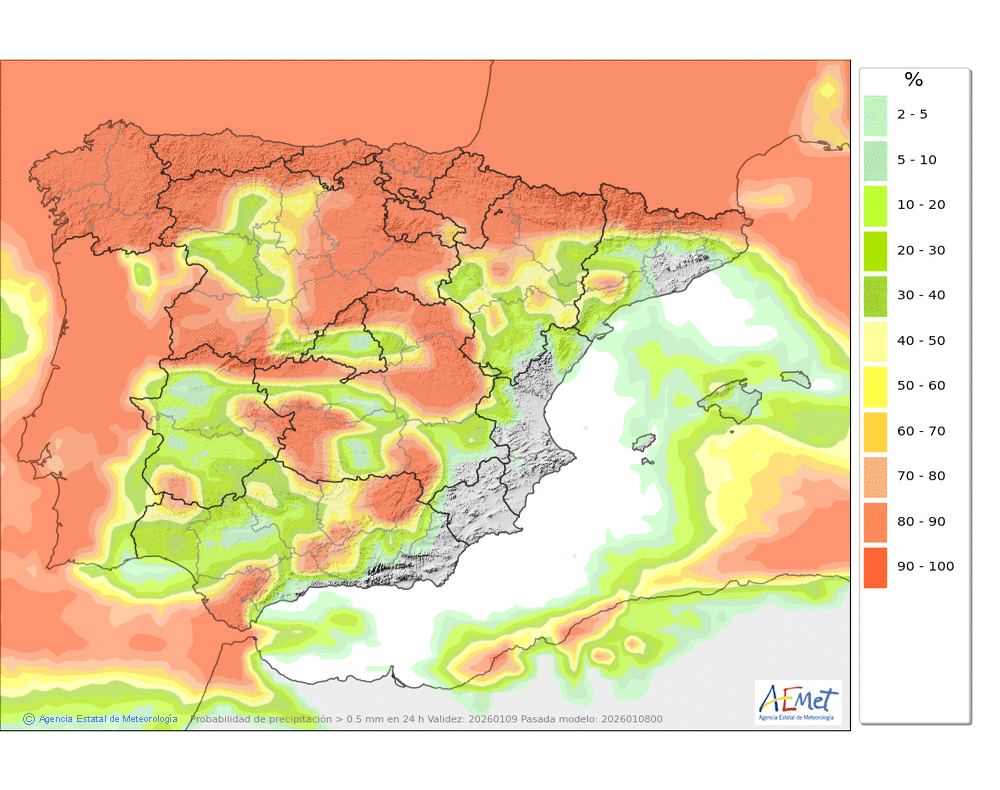 precipitaciones débiles o localmente moderadas, más frecuentes e