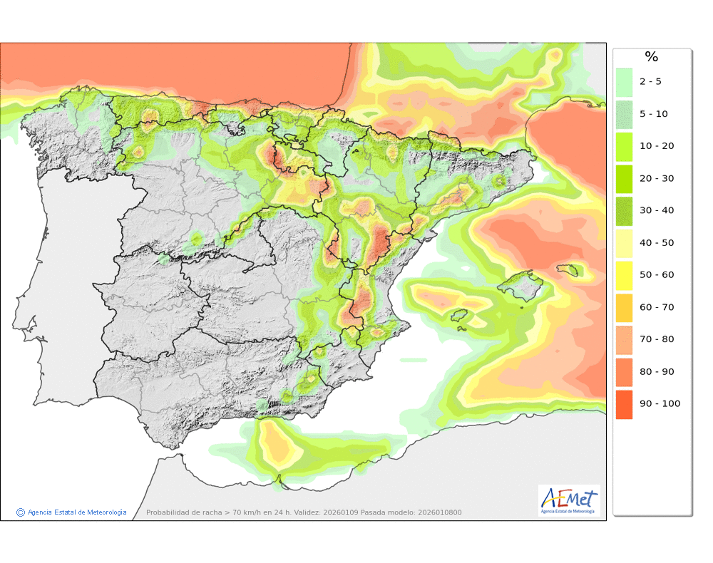 superar los 100-110 km/h en cotas altas y zonas expuestas.