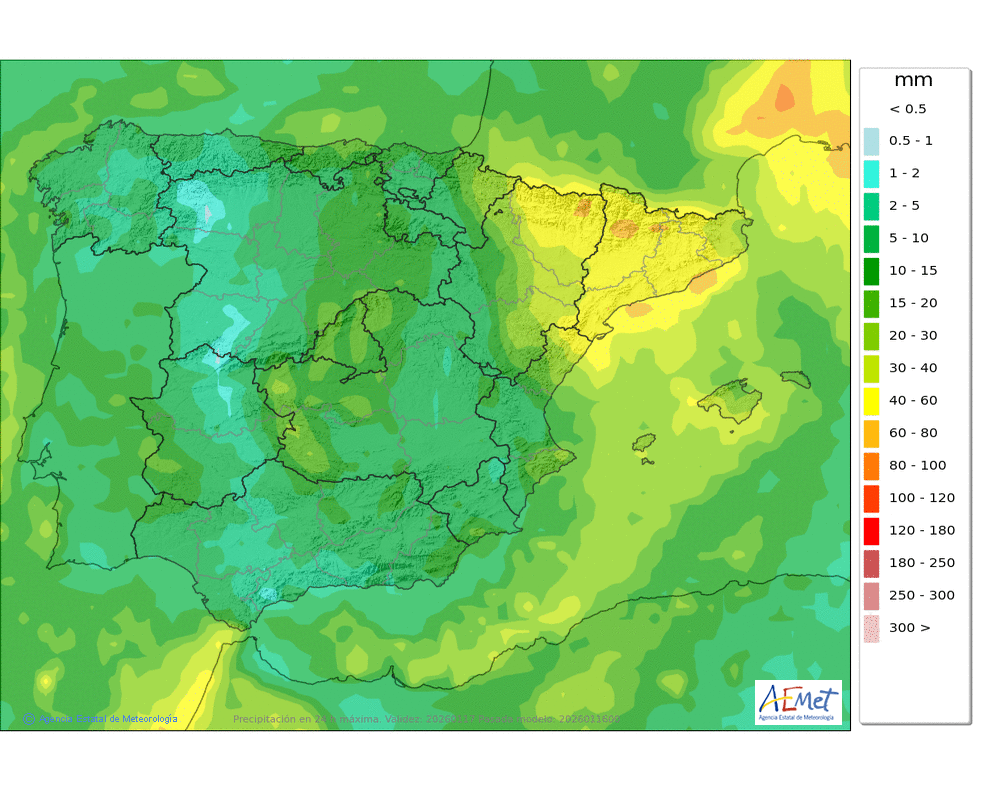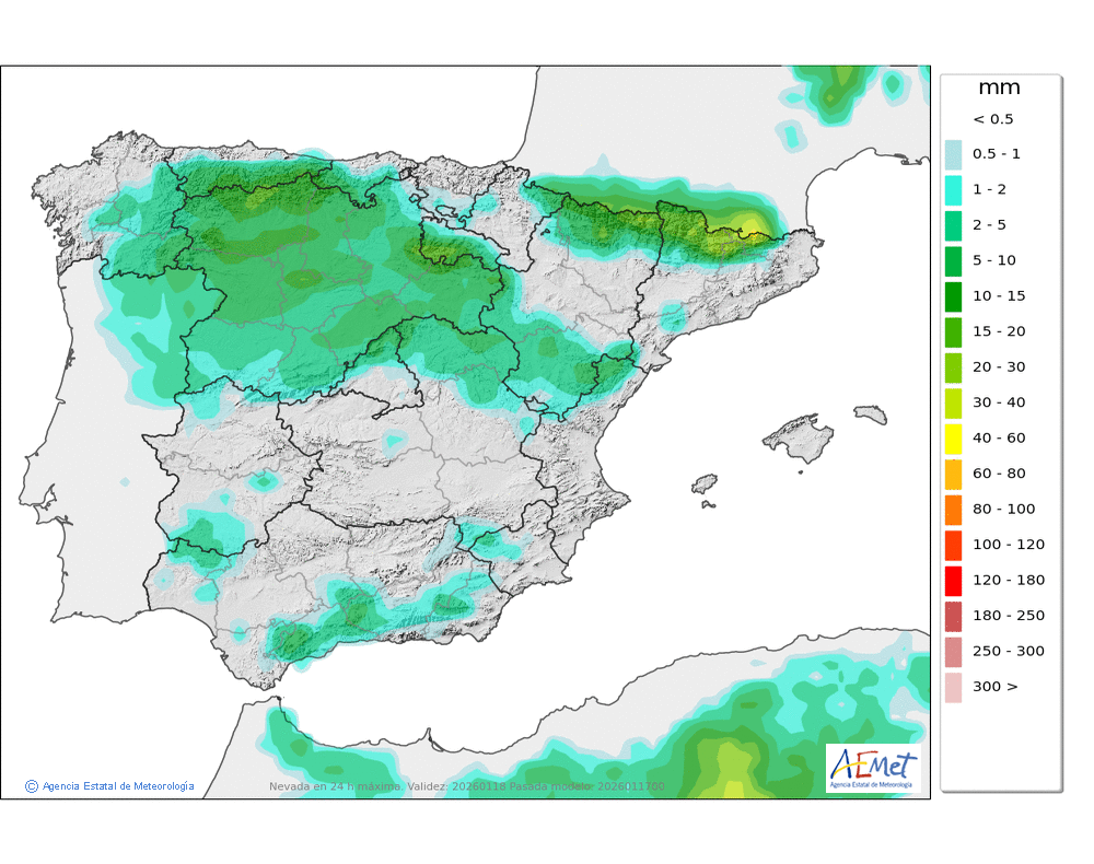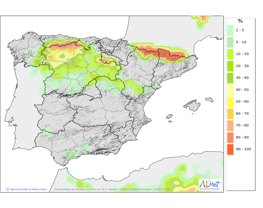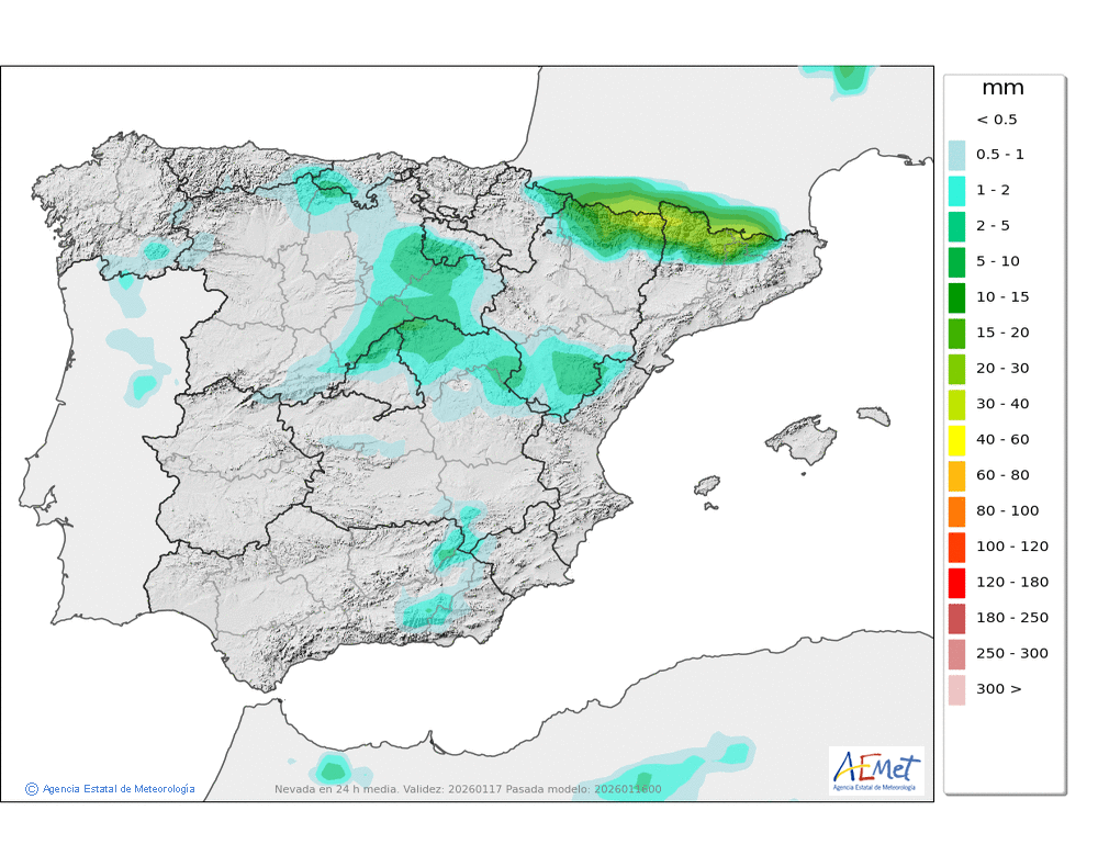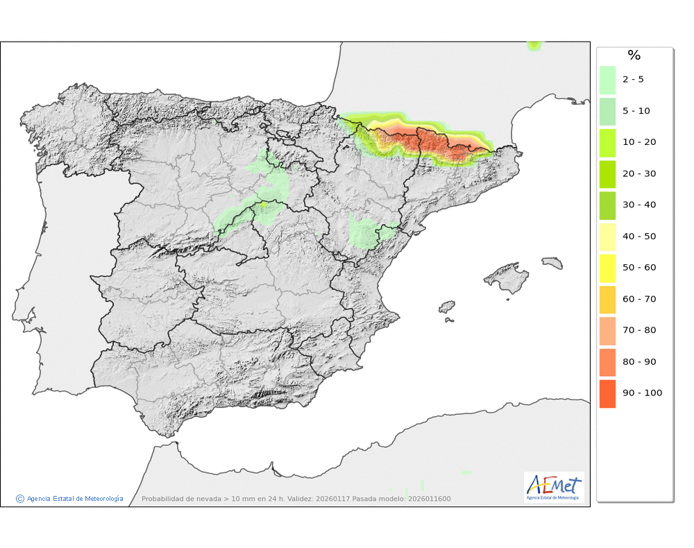 Prepirineo: Débil (1), por debajo de 2000 m, y