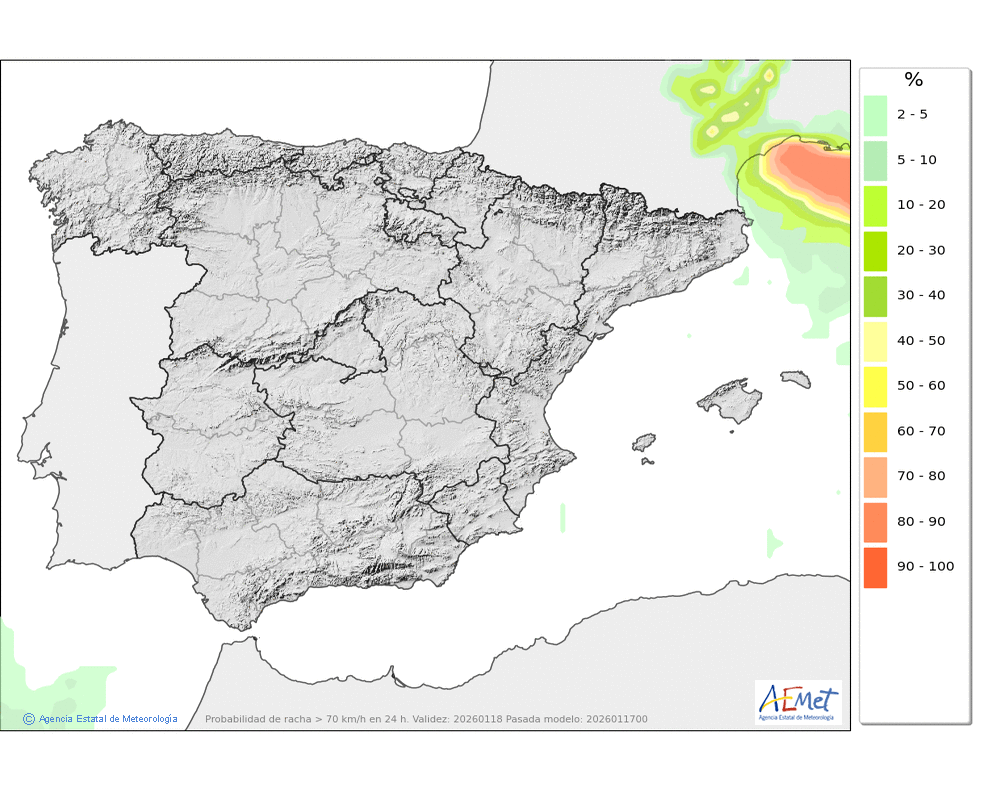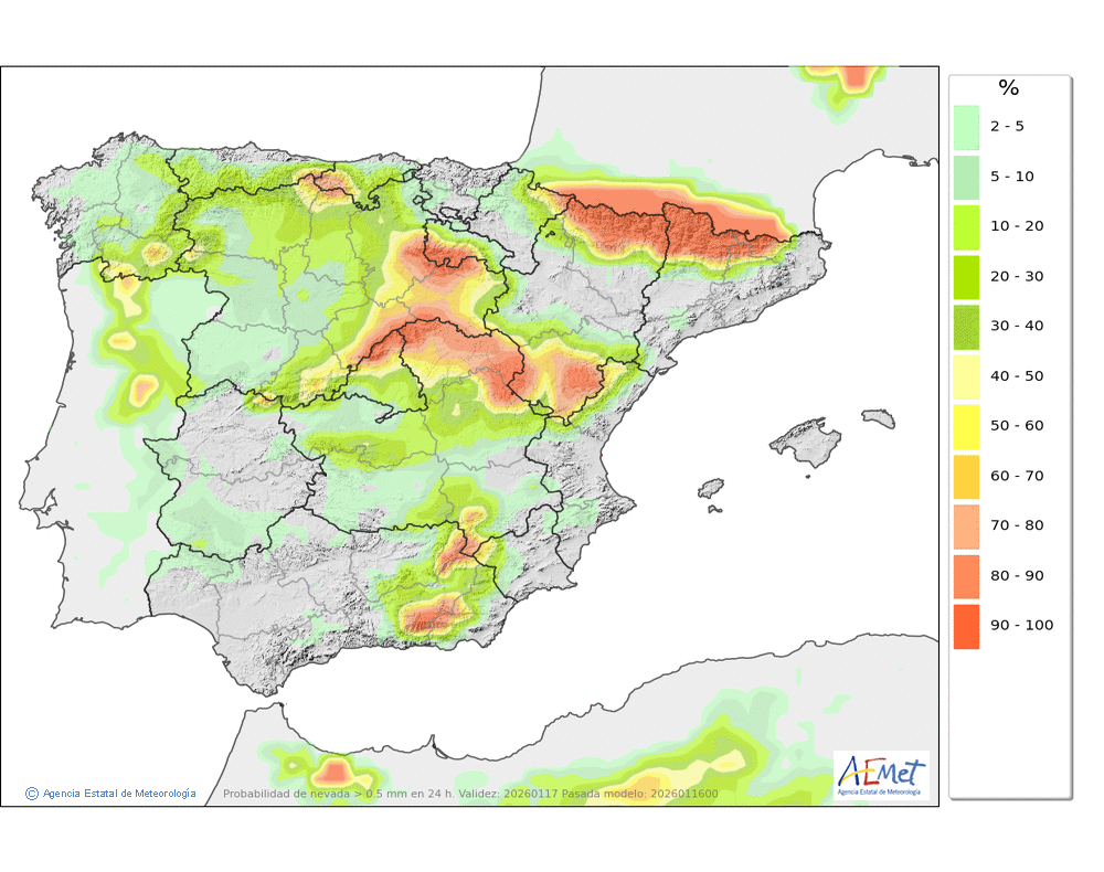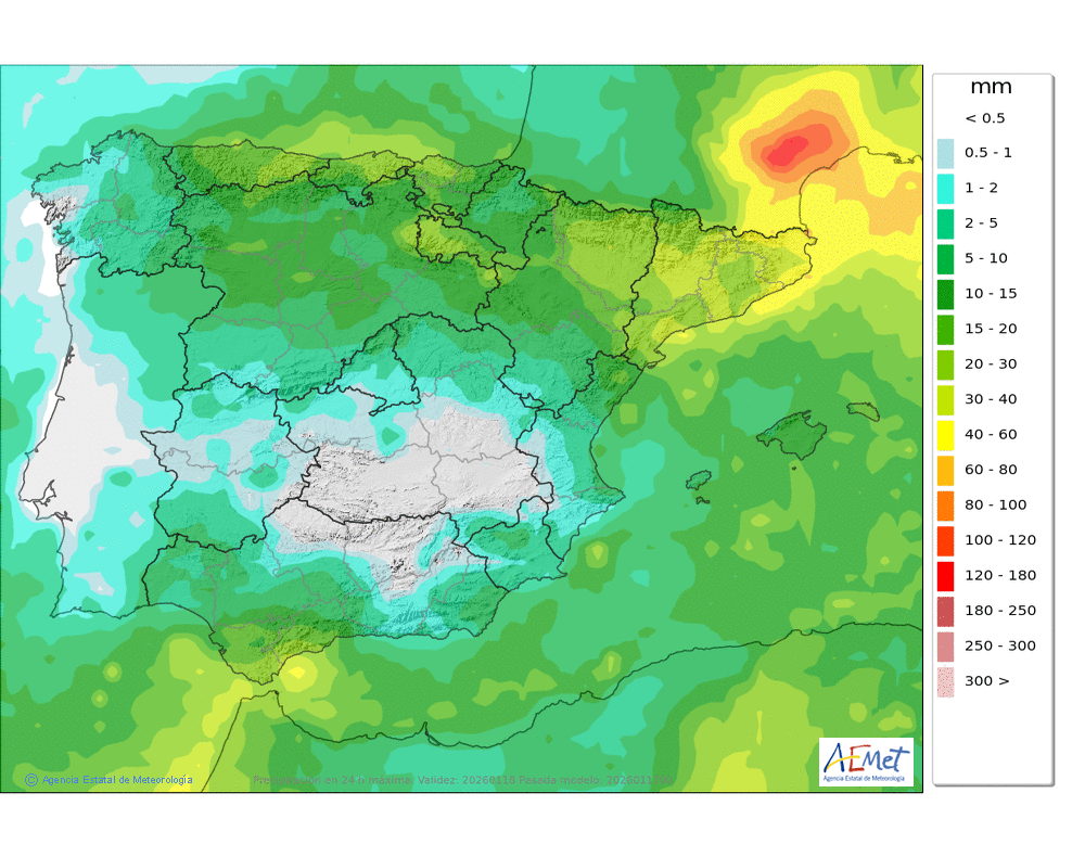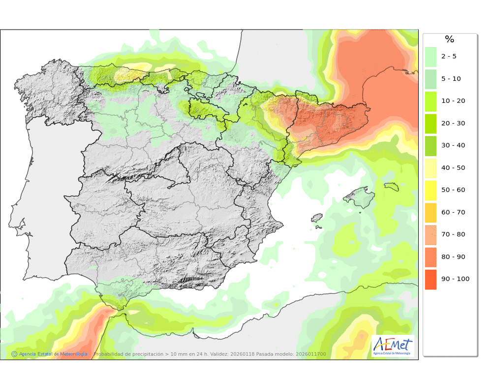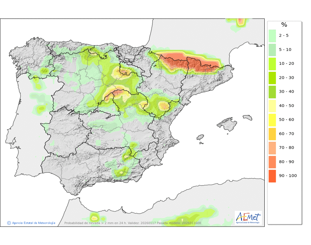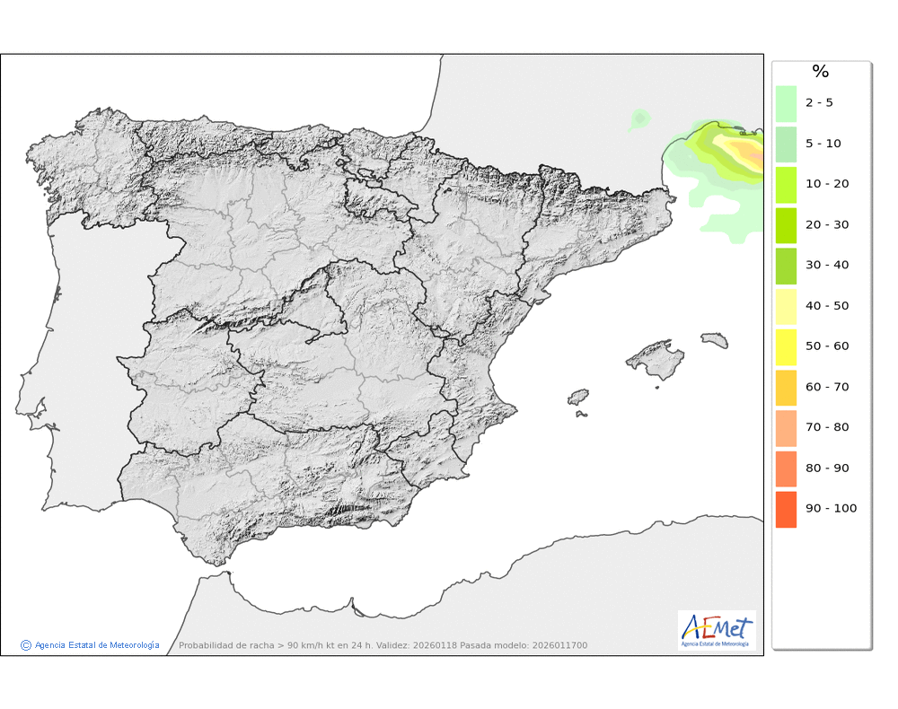 Prepirineo: Débil (1), por debajo de 2000 m, y