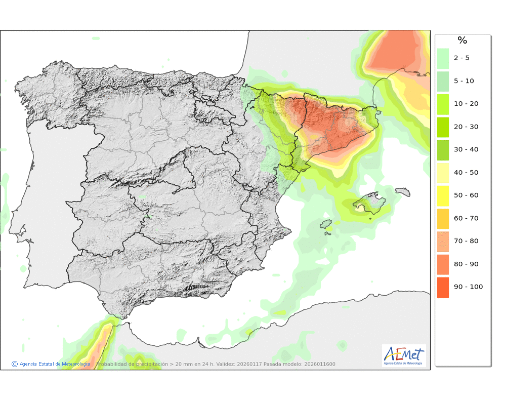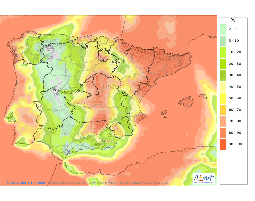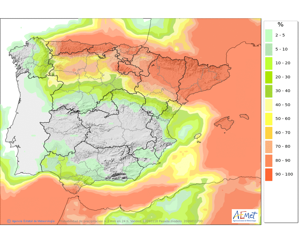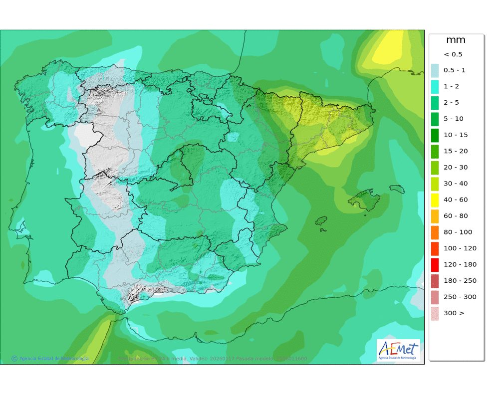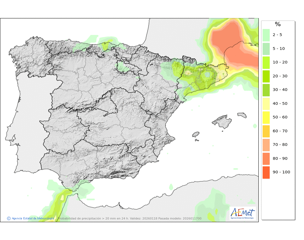 Prepirineo: Débil (1), por debajo de 2000 m, y