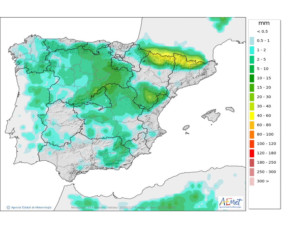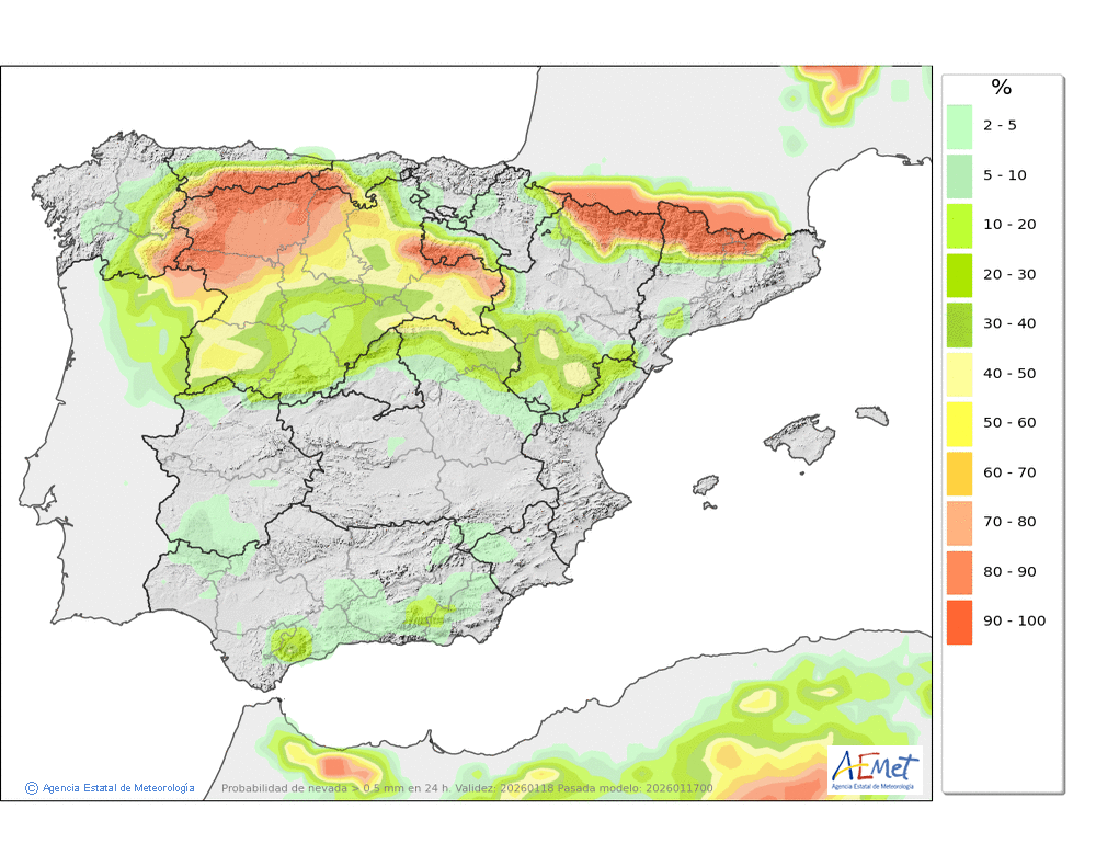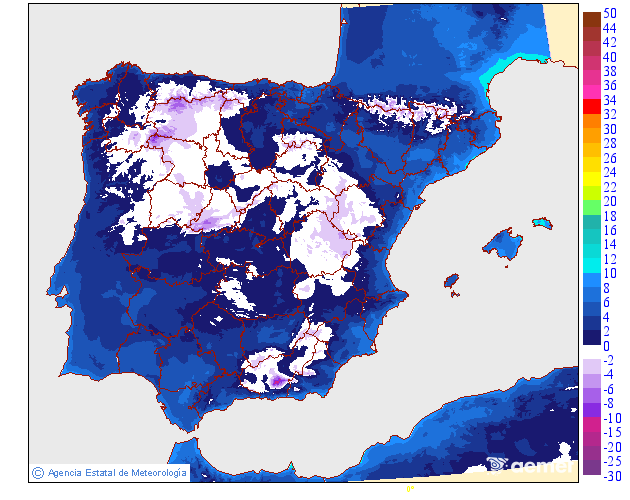 Cota de nieve bajando de 1500-1400 a 1300 metros.