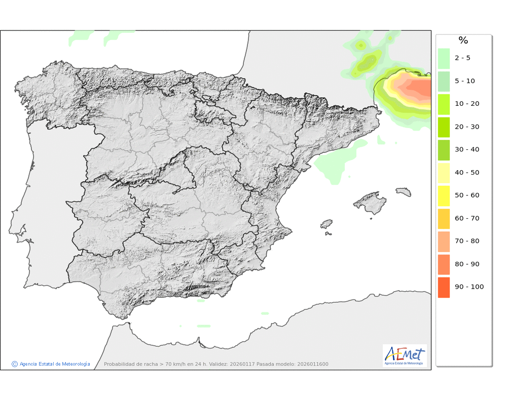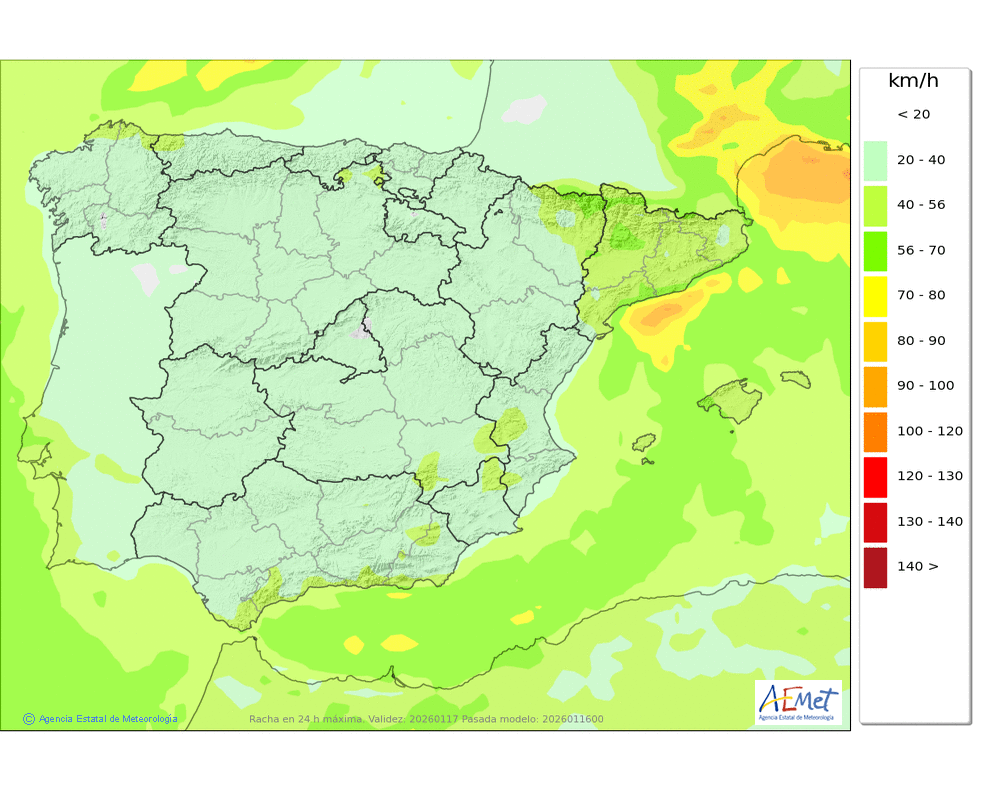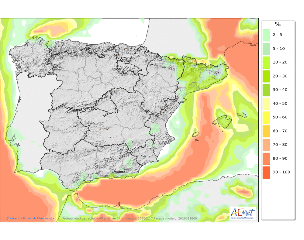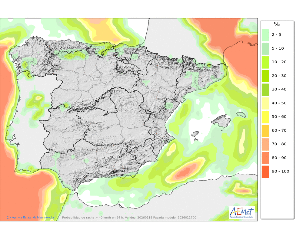 Viento en la atmósfera libre a 3000 m: SW 35 km/h