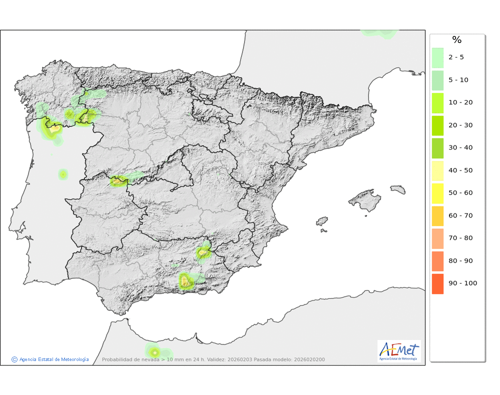 favorecerán los problemas de nieve húmeda, si bien la cota de