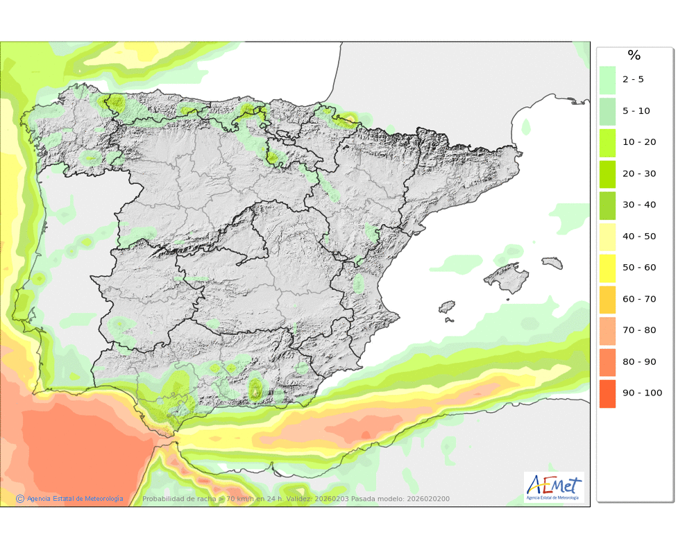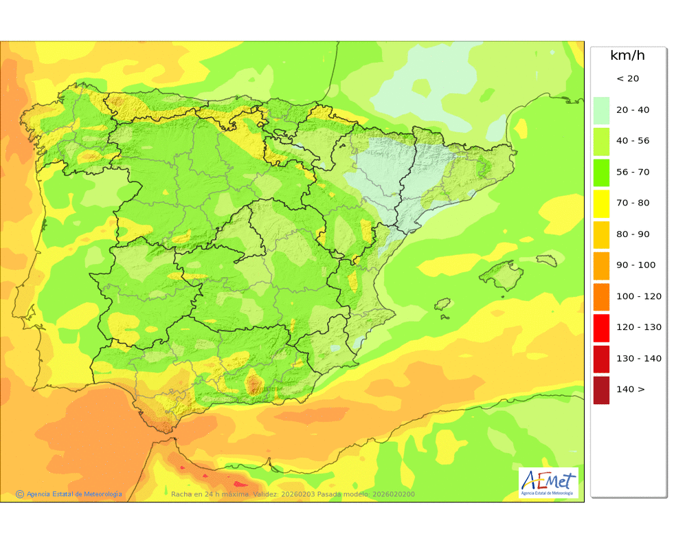 esperan rachas muy fuertes del suroeste, que podrán superar los